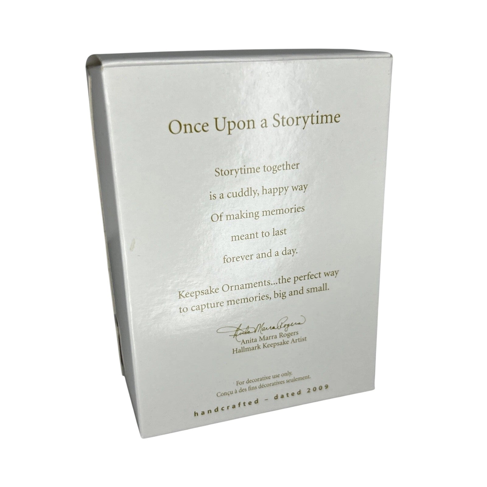 This ornament features a tender scene of a parent bear sharing story-time with a young bear, set in a cozy moment of holiday warmth. The figures are styled in soft tones and posed with an open storybook, capturing the timeless tradition of reading together by the tree. Designed in 2009, this piece speaks to memories of family and holiday ritual, making it a meaningful choice for collectors and décor. Its modest size and friendly bear motif make it suitable for both everyday tree displays and collector shelves.