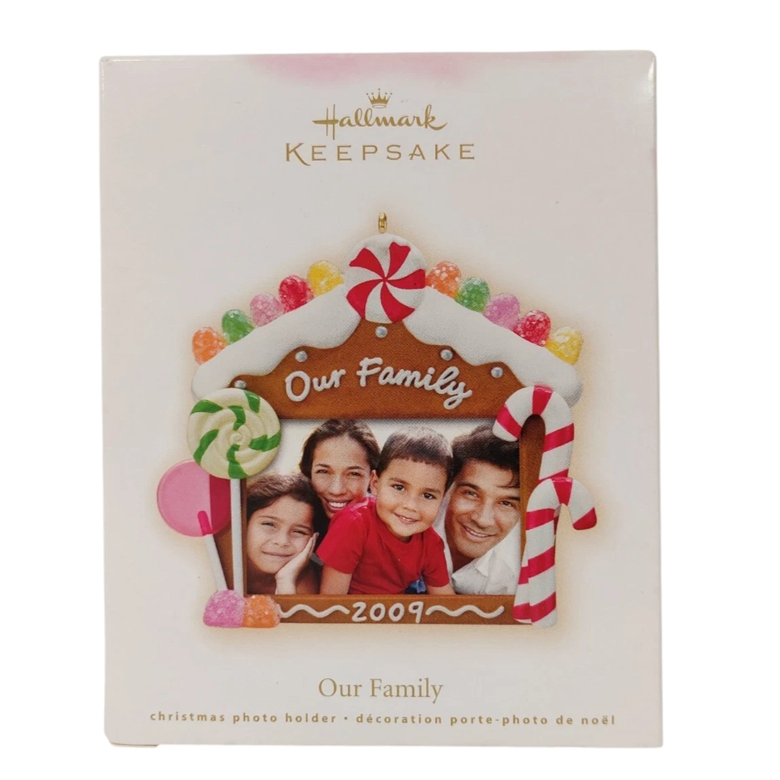 Celebrate cherished memories with the 2009 Our Family Photo Holder ornament, designed as a festive gingerbread house adorned with colorful icing and candy details. This delightful piece features the inscription “Our Family 2009,” making it a perfect keepsake for family gatherings and holiday traditions. The ornament includes the original box and is dated 2009, ensuring its authenticity and collectibility. Please note that this ornament does not require batteries or cords.