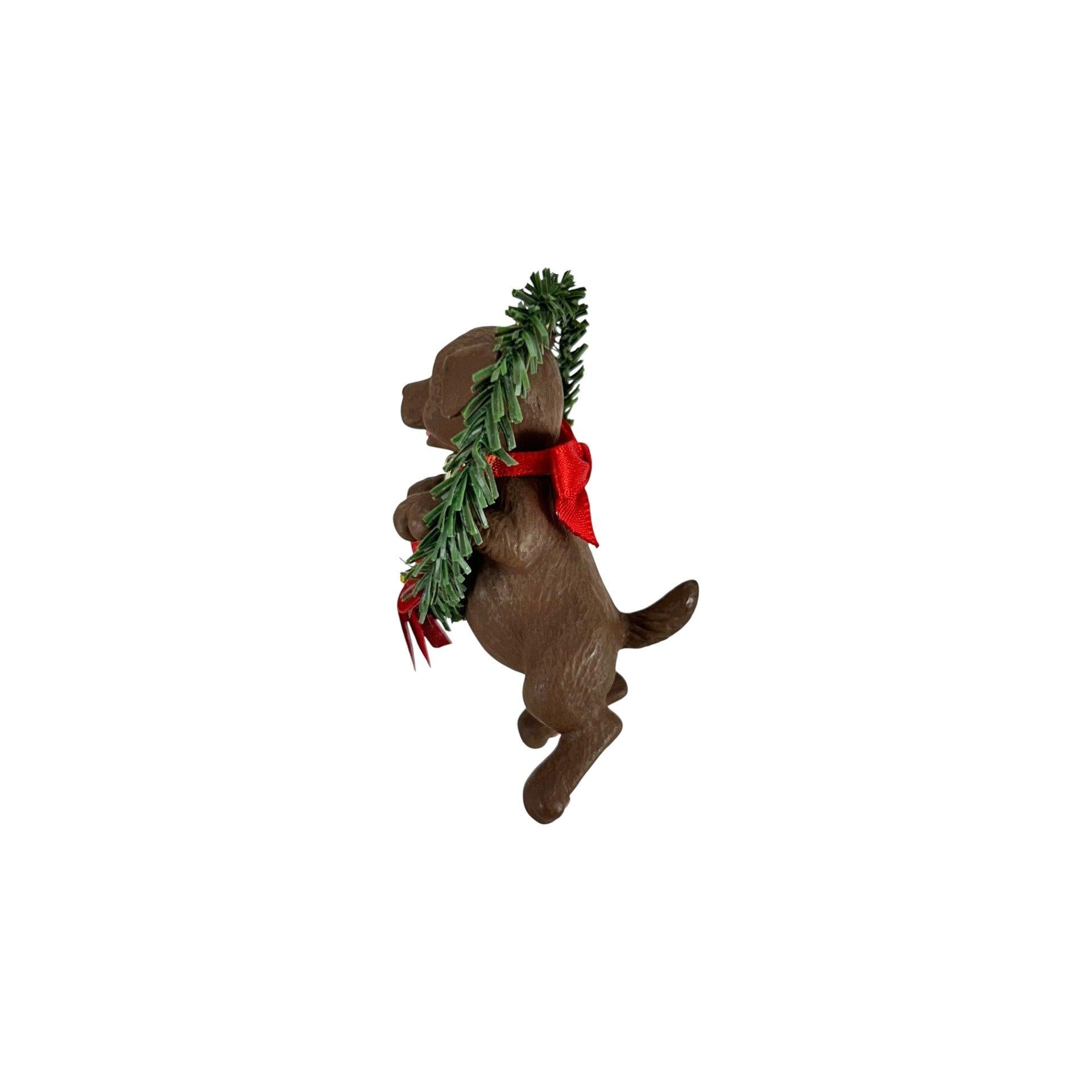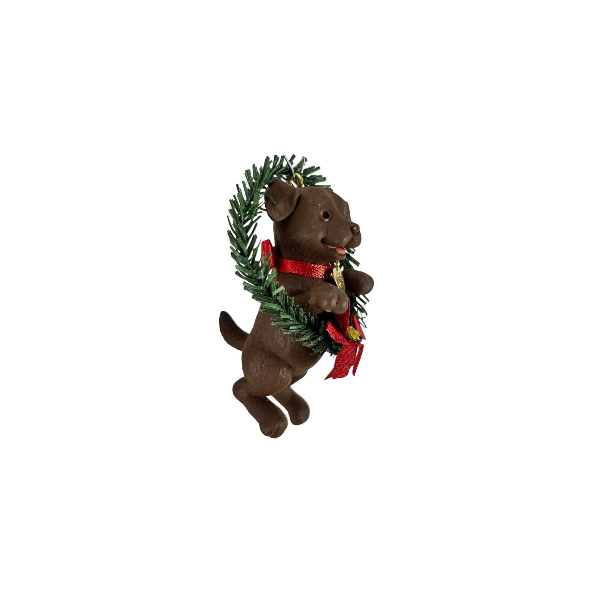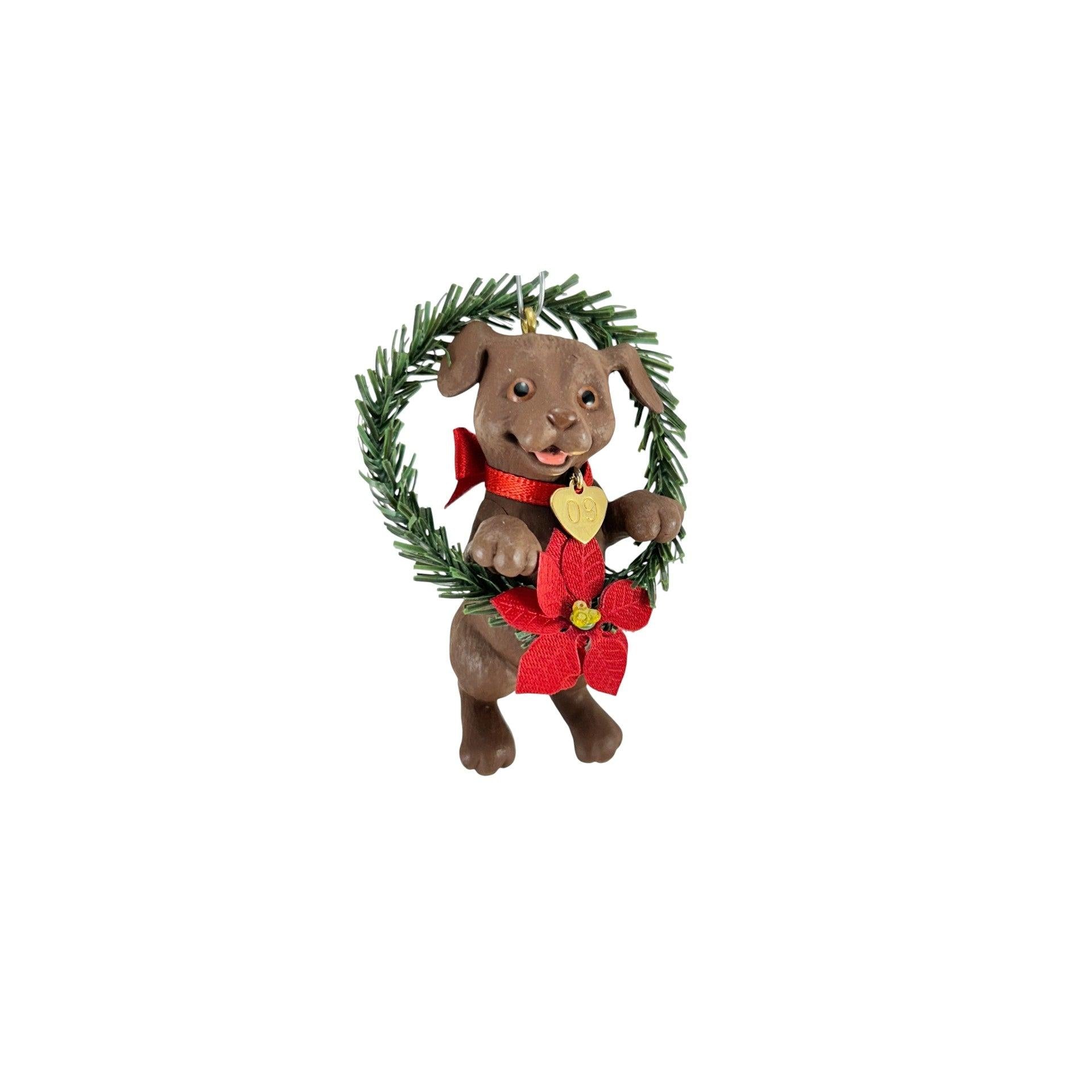 The 2010-dated (released in 2009) ornament from the beloved “Puppy Love” series (SKU QX8112) showcases a chocolate Labrador retriever puppy peeking through a festive evergreen wreath adorned with a bright red ribbon and a gold heart-shaped tag marked “09” to denote the year. Designed by artist Anita Marra Rogers, this charming resin keepsake stands about 2¾″ tall and captures the joyful, tail-wagging affection of man’s best friend during the holiday season. Its place in the long-running Puppy Love series adds collector appeal for dog lovers and Hallmark Keepsake enthusiasts alike.