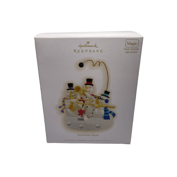 This animated Magic-series ornament features a trio of snowmen dressed in top hats and scarves, ready to perform a jazzy holiday tune. Pressing the button initiates a light‐show and the song “Let It Snow,” while additional buttons allow you to bring each snowman into (or out of) the performance, putting you in charge of the band. Crafted in vibrant resin and plastic with a multicolored finish and LED lights embedded in the base, it brings playful motion and sound to your tree or display. With its musical interactivity and novelty appeal, it’s a standout for collectors who focus on sound/light ornaments and festive snow-themes.