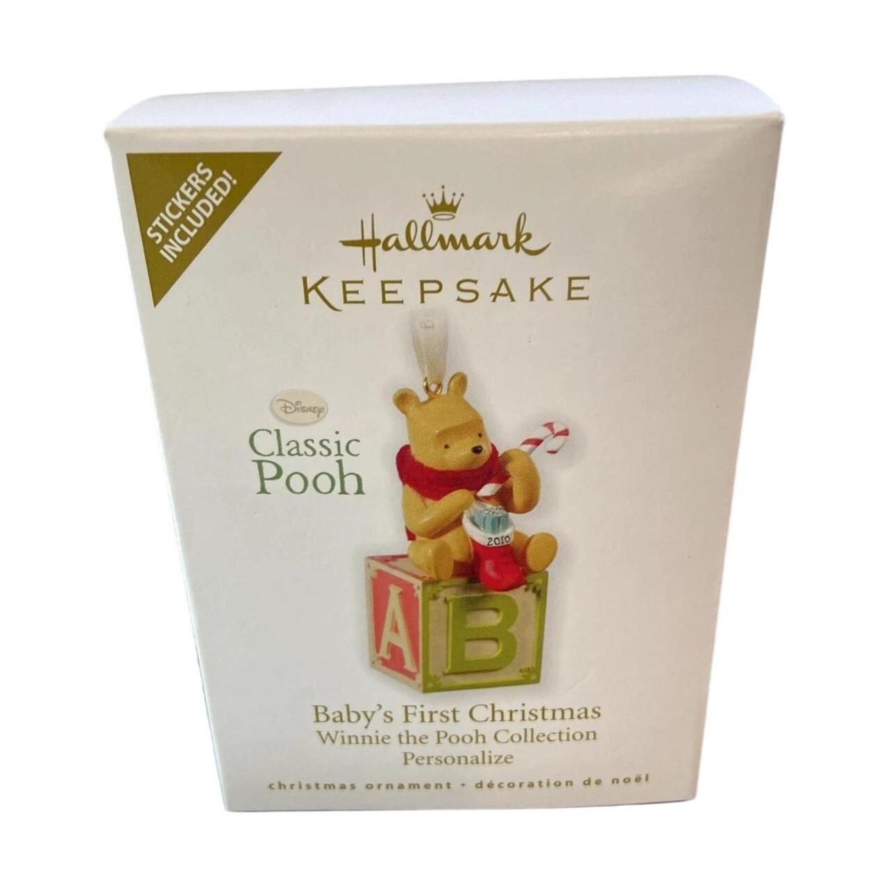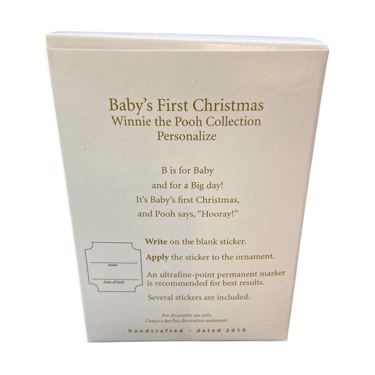 Celebrate the magic of a baby’s very first holiday with the 2010 Baby’s First Christmas (Winnie the Pooh) ornament. In this sweet keepsake, Classic Pooh sits atop a cheerful ABC block, holding a stocking marked “2010” — a gentle, nostalgic tribute to that milestone Christmas. The ornament comes with personalization stickers so you can add the baby’s name and birthdate, making it a truly special keepsake.