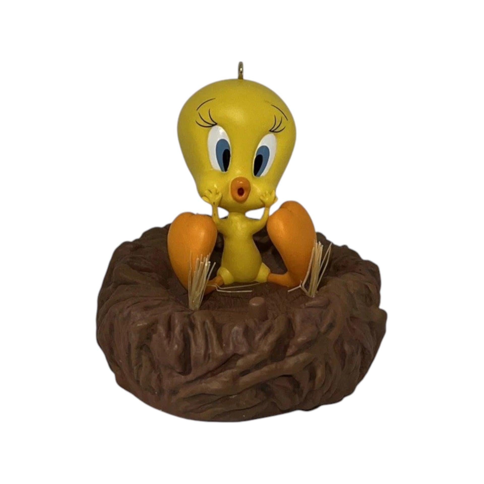 This fun, licensed ornament from the Hallmark Keepsake series features the beloved Tweety Bird from the “Looney Tunes” franchise. Designed in multicolored resin/plastic, the piece stands just over 2 ¼″ tall and includes a “Magic” sound-module that plays one of Tweety’s famous lines when activated. The cheerful cartoon-style bird perched in festive holiday pose makes this ornament both a nostalgic toy-theme decoration and a smart choice for collectors of animated characters and pop culture treasures.