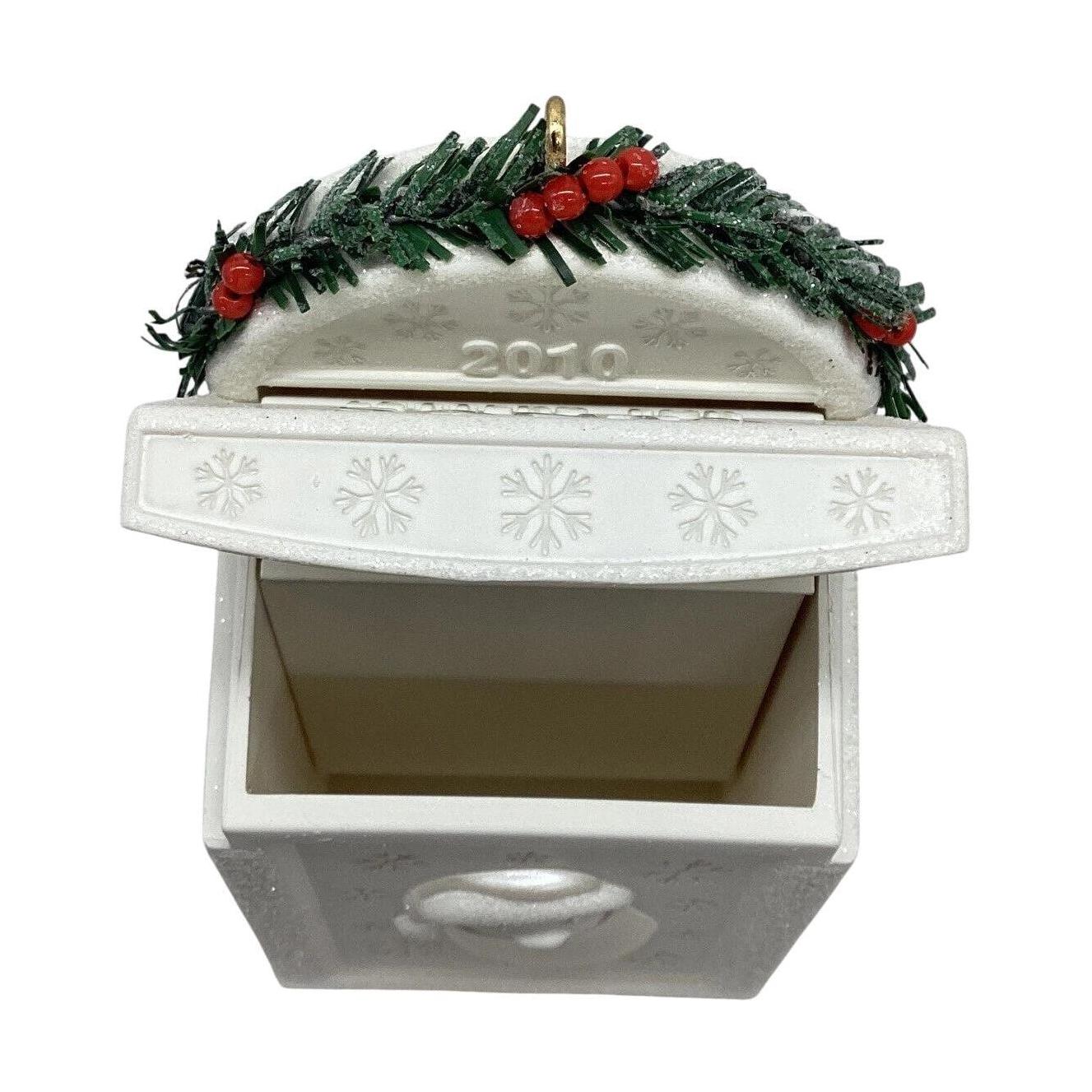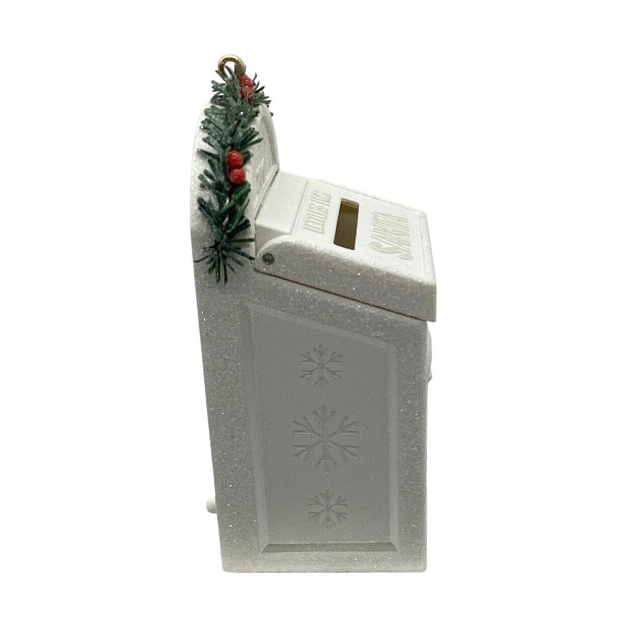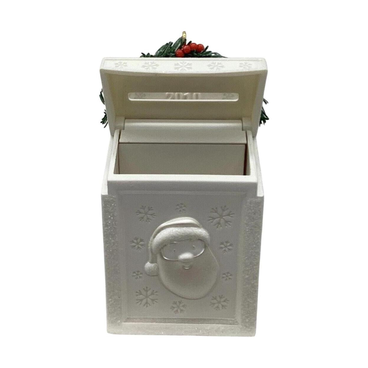 This enchanting keepsake ornament from Hallmark gives little ones (and the young-at-heart) a magical mailbox to capture holiday wishes. The design features a miniature white mailbox ornament with a working letter-slot; children (or adults!) can write their own “Letters to Santa” on the included tiny cards and envelopes, drop them into the slot, and the letters “disappear” into a secret compartment inside. Crafted in multicolored resin/plastic and standing about 3½″ tall, it combines interactive fun with lasting keepsake value — perfect for families and collectors alike.