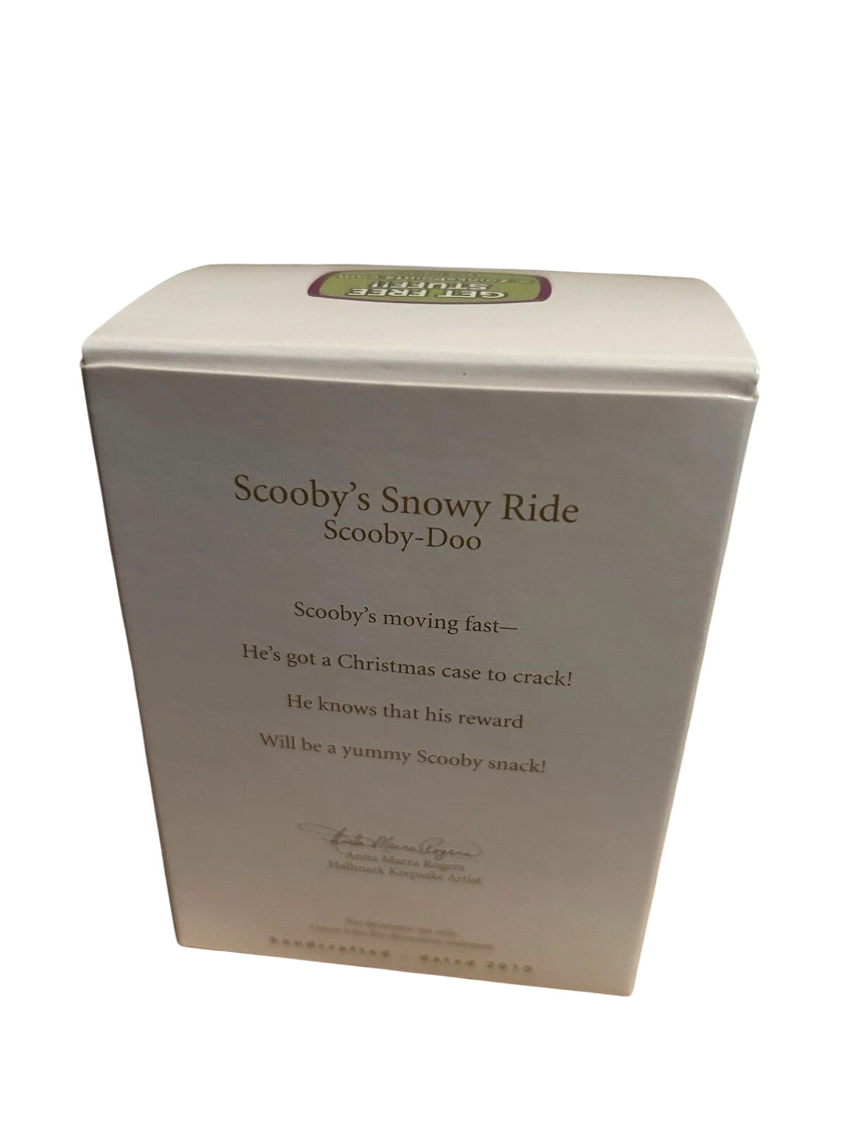 Slide into winter fun with 2010 Scooby’s Snowy Ride (Scooby-Doo), a Keepsake ornament capturing Scooby-Doo delightfully sledding on a saucer sled through snowy terrain. Crafted by Anita Marra Rogers, it’s part of Hallmark’s Scooby-Doo series and features vivid detail and vibrant colors. Measures about 3¼″ wide, comes in its original box when available, and requires no batteries, cords, or lights—just hang and display this cheerful piece of holiday nostalgia.