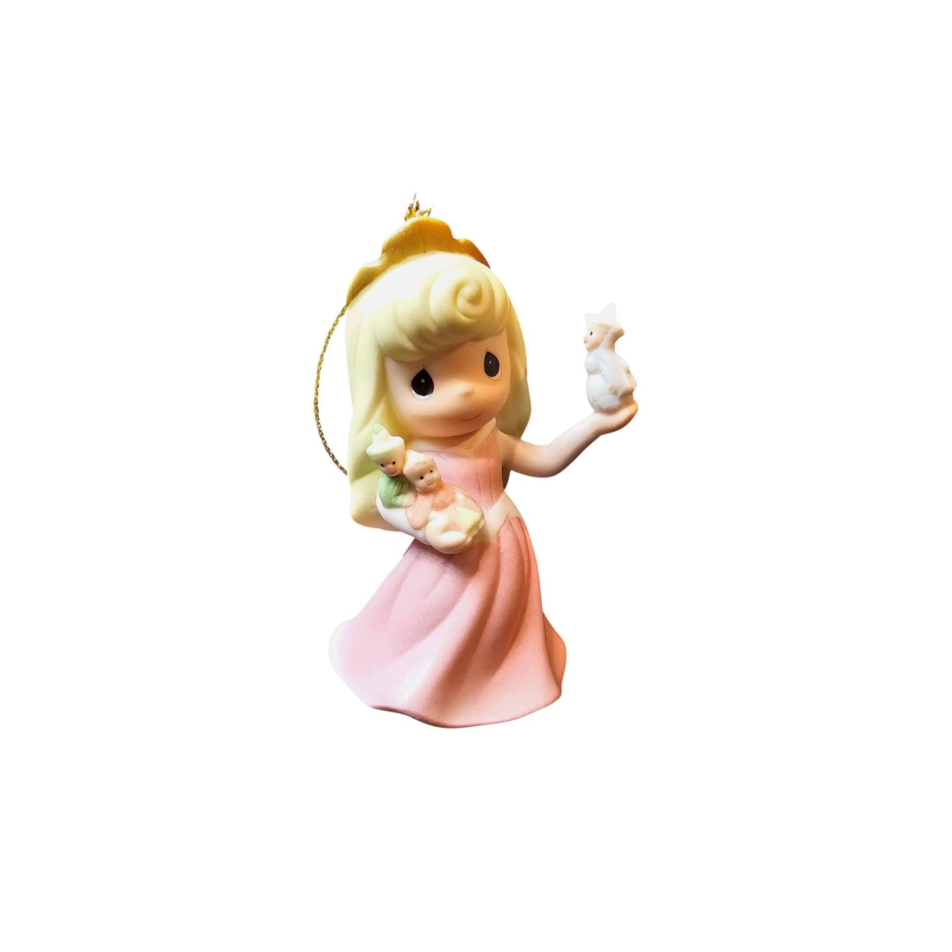 Add a fairytale touch to your tree with Sleeping Beauty in Precious Moments styling, featuring Princess Aurora in her signature soft, storybook look alongside her three fairy godmothers—Flora, Fauna, and Merryweather—arranged in a charming decorative scene with pastel details. This item includes one ornament and is typically sold new in its original box (packaging inserts and paperwork can vary by seller). It has no lights, sound, or motion, so it does not require batteries, cords, or light strings—just hang and enjoy.