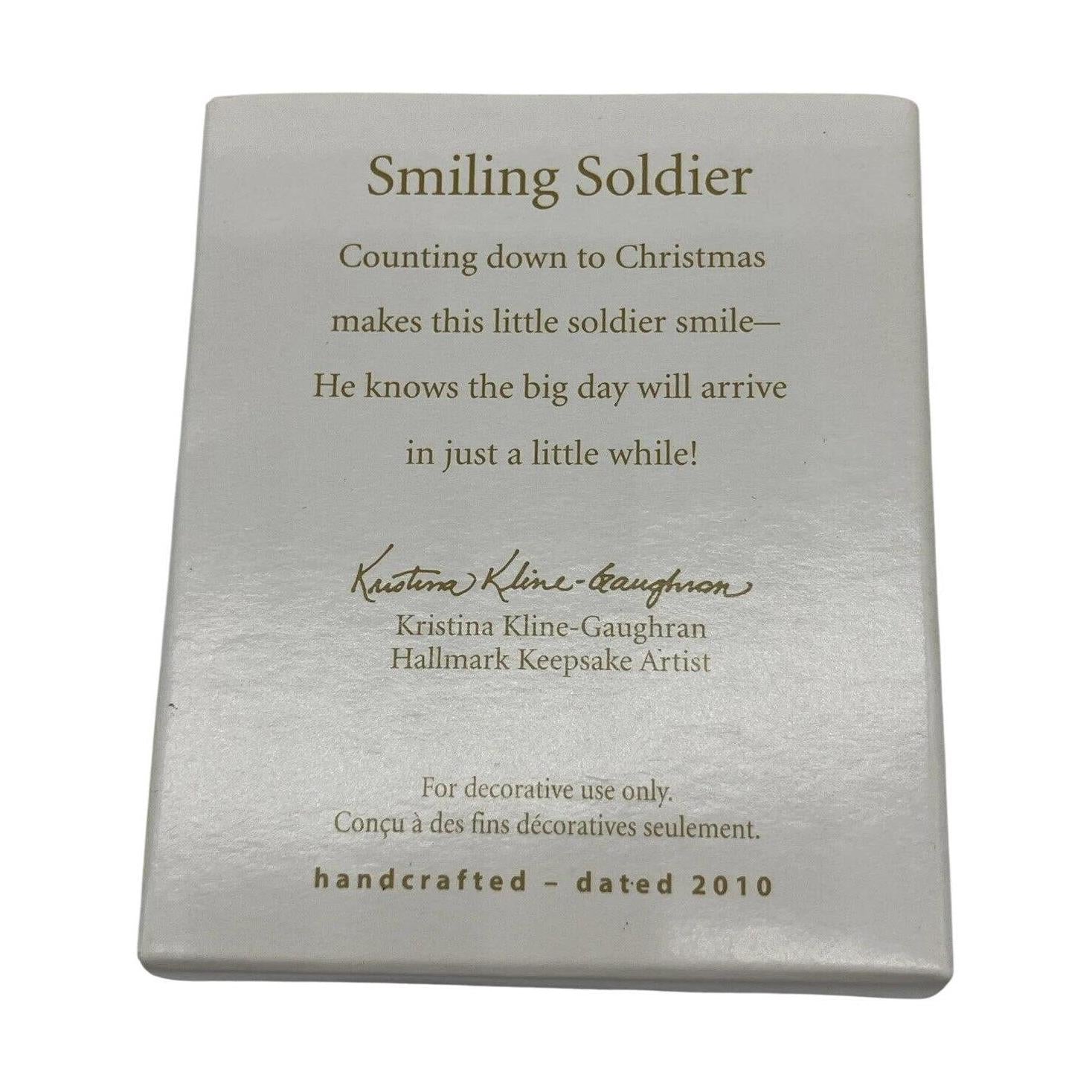 This miniature ornament depicts a cheerful clothespin-style soldier dressed in traditional red and white uniform accents, standing at approximately 2″ tall. The design embraces classic toy-soldier holiday imagery, featuring a bright smiling face and simplistic crisp detailing suitable for a whimsical Christmas décor display. Designed as a Miniature Keepsake offering, it was originally issued in 2010 as a gift for members of the Keepsake Ornament Club, which adds to its collectibility. The compact size and club-exclusive status make it a charming addition to a Hallmark collection, especially for those focusing on toy-soldier, miniature, or club-member themed ornaments.