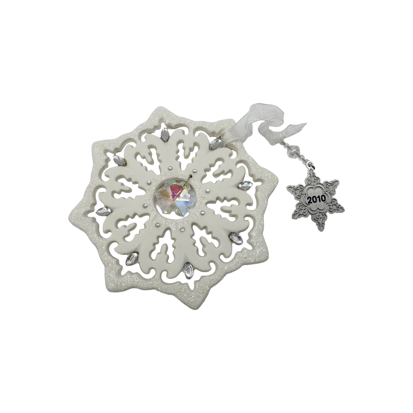 Celebrate Hallmark’s 2010 annual Snowflake with this exquisite porcelain keepsake, part of the "Simply Beautiful" collection. Inspired by a greeting card design, it dazzles with glitter and crystals on a snowflake shape, hanging from a ribbon charm stamped “2010”. Mint in its original Keepsake box with hang tag and clamshell—no power or batteries needed. A refined touch for any holiday display!