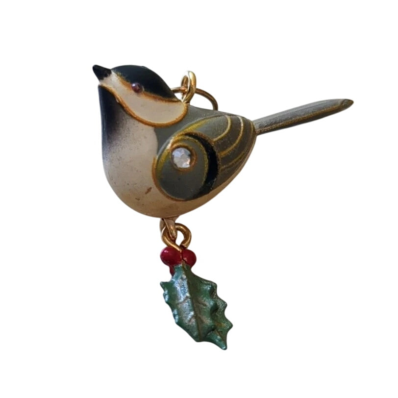 Delight in the beauty of nature with Black-Capped Chickadee, a 2011 Hallmark miniature from the Beauty of Birds collection. This dainty keepsake features a detailed modeling of the chickadee in lifelike form. At just about ¾″ × 1 ¼″ × 1 ¼″, it’s perfect for subtle charm on your tree or display. In mint condition, it includes its original Hallmark box and hang tag. This is purely decorative — no batteries, cords, or motion features.