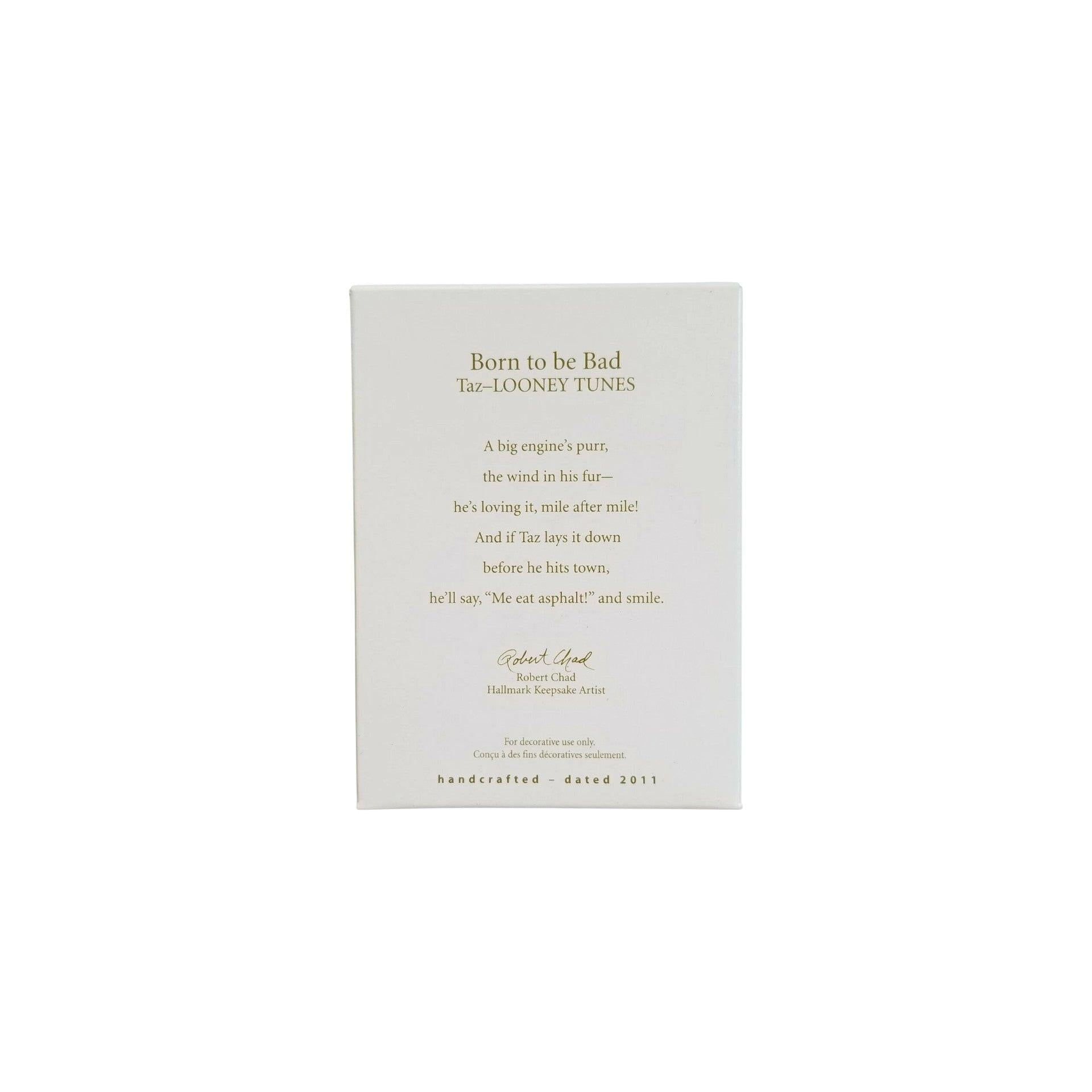 This 2011 Hallmark Keepsake ornament—Born to Be Bad—casts Taz in ultimate cartoon cool mode, sporting a sleek black leather jacket that exudes biker attitude. With his classic dramatic grimace and rugged stance, “the Tasmanian Devil” brings mischievous holiday flair to any tree. Crafted by artist Robert Chad, it arrives instantly display-ready—no batteries or cords needed.