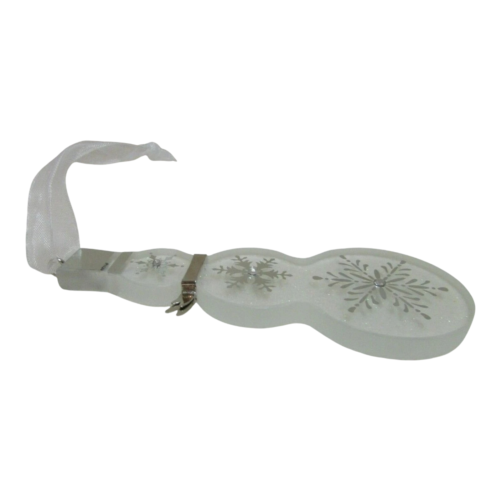 Embrace the elegance of winter with the Buttoned-Up Snowman ornament from Hallmark’s Simple Elegance collection. Designed by artist Sue Tague, this piece features a frosted-glass snowman adorned with three ornate snowflake buttons, a sleek top hat and a crisp scarf, set in a minimalist finish that brings timeless style to any holiday décor. It arrives mint in its original box — making it equally perfect for collectors and festive decorating alike. With none of the bells and whistles—no motion, no sound, no lighting—this ornament simply hangs and shines on its own.