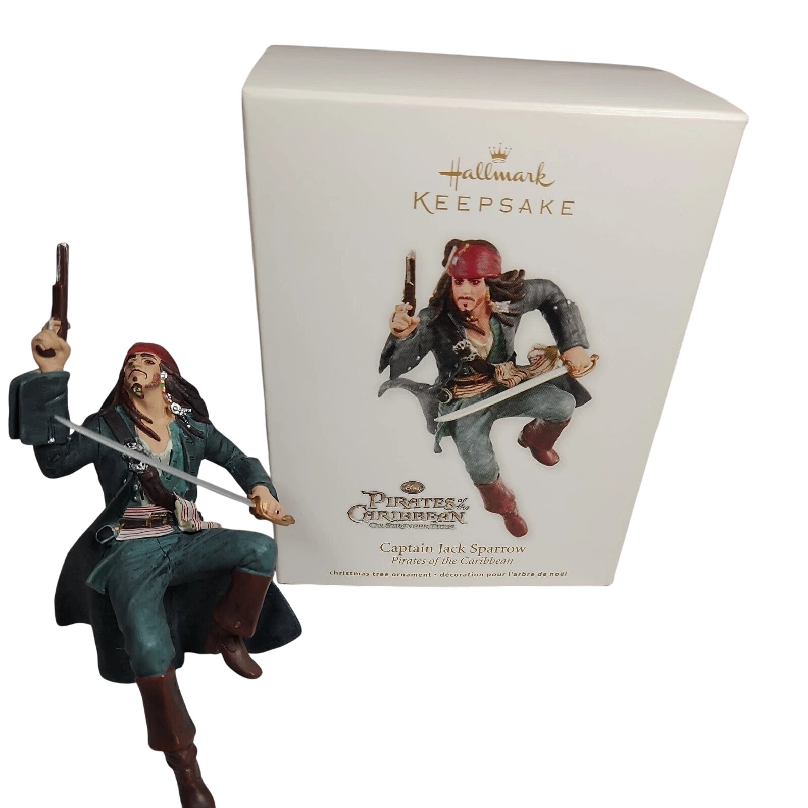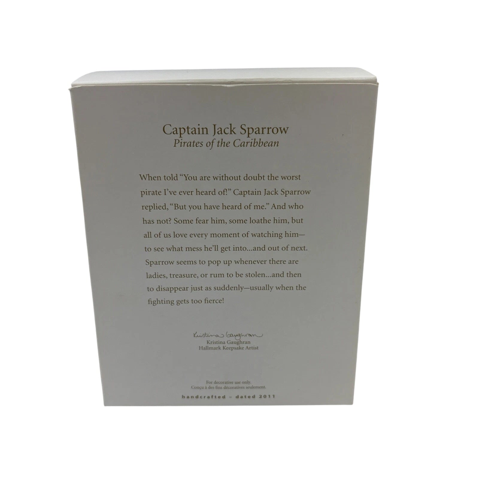 This 2011 Hallmark Keepsake Ornament features Captain Jack Sparrow in full pirate regalia—sword in one hand, musket in the other—ready for adventure on the high seas. Designed by Kristina Gaughran, the ornament captures Jack’s swashbuckling personality through detailed sculpting and vibrant paint. The piece includes the ornament itself and comes in its original Keepsake box when in mint condition. No batteries, cords, lights, or sound—this is purely decorative.