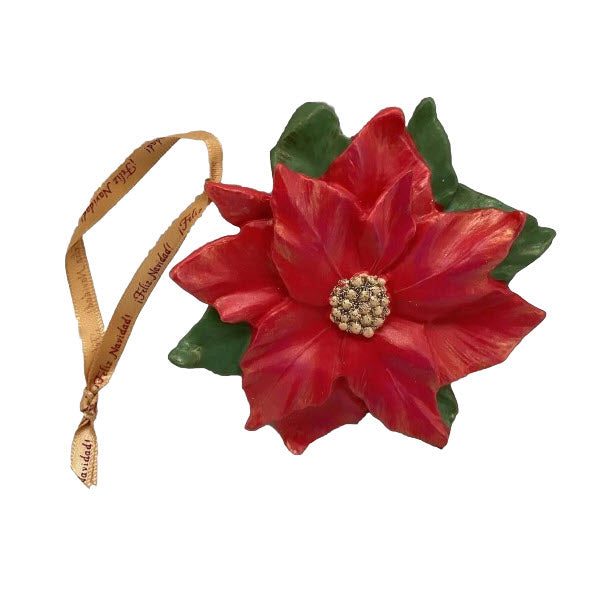 Materials: Mixed materials—featuring a sculpted poinsettia with ribbon detailing