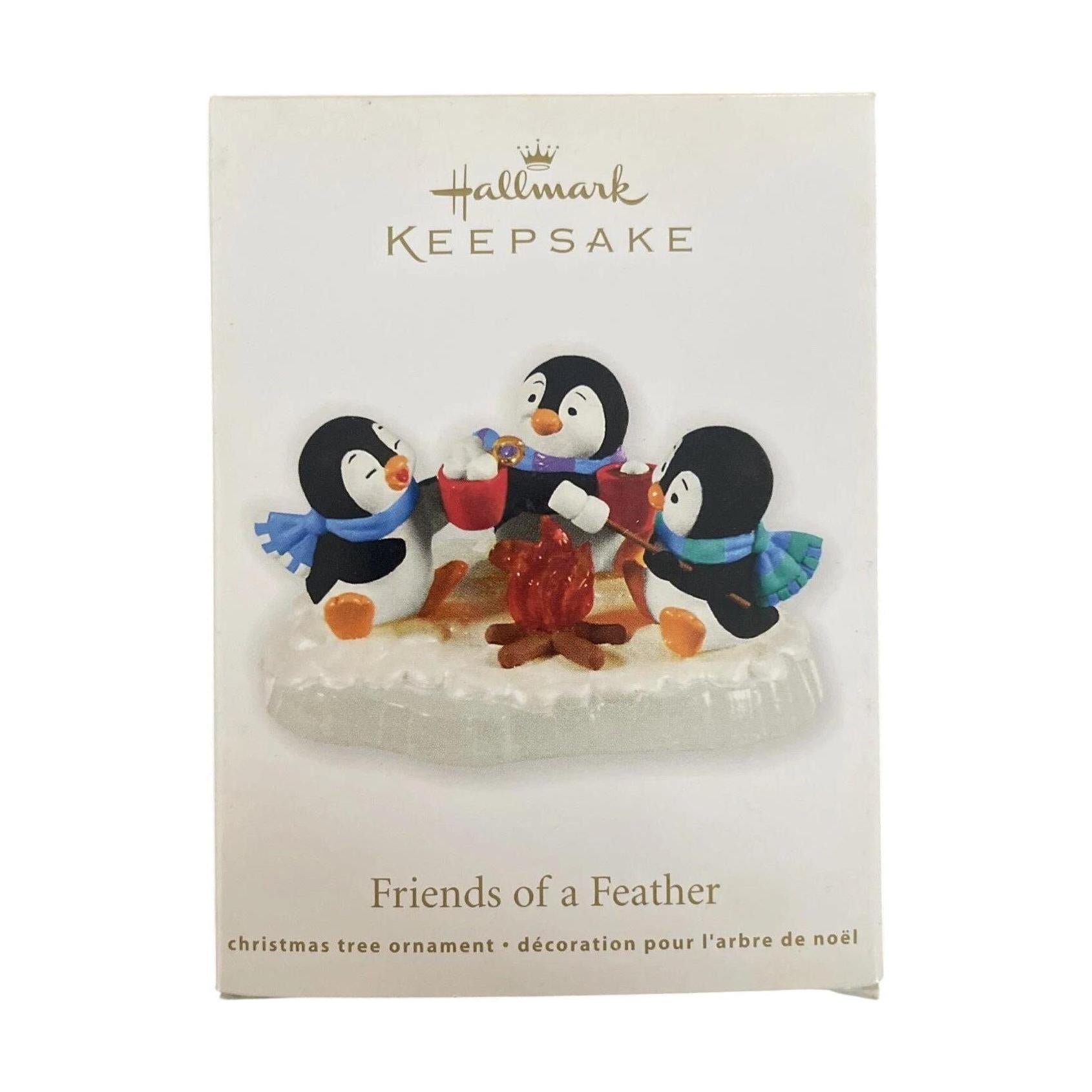 Gather round the campfire with 2011 Friends of a Feather, a heartwarming miniature ornament from Hallmark’s beloved unofficial Kris’ Penguins collection. Designed by Kristina Gaughran, this charming scene features three penguin pals roasting marshmallows and sipping cocoa under cozy winter skies. Crafted for collectors, this keepsake arrives Mint-in-Box and embodies friendship and festive nostalgia.
