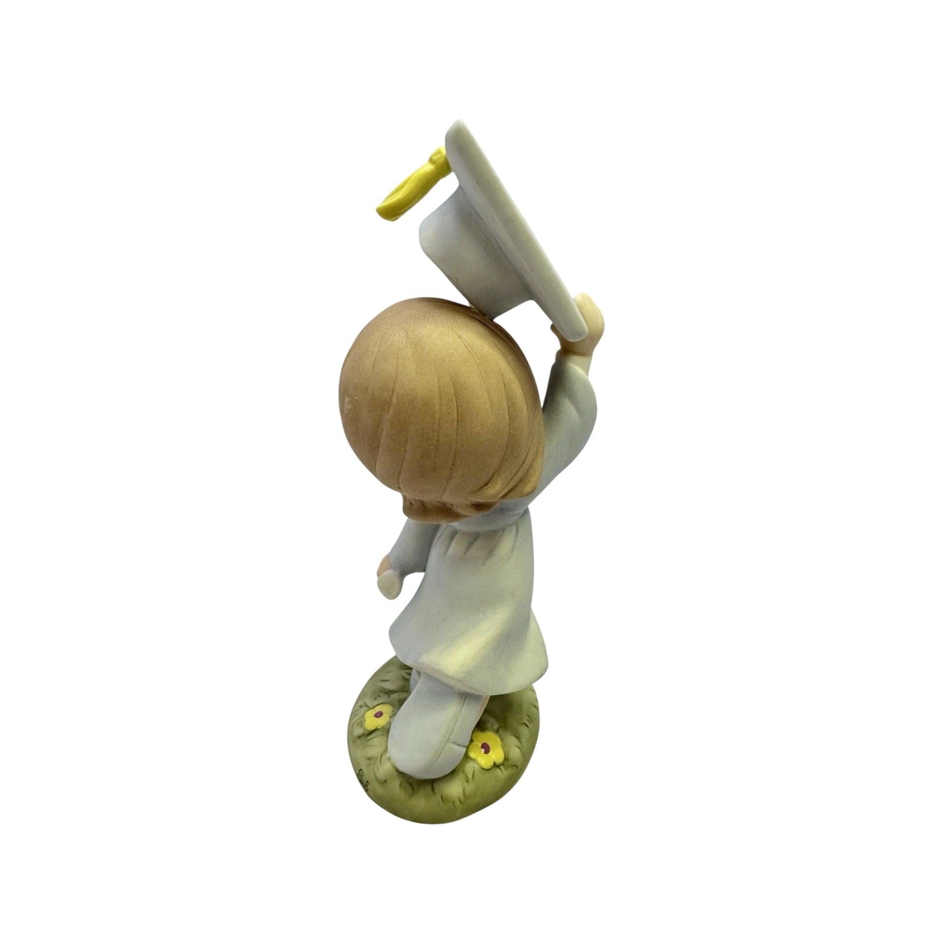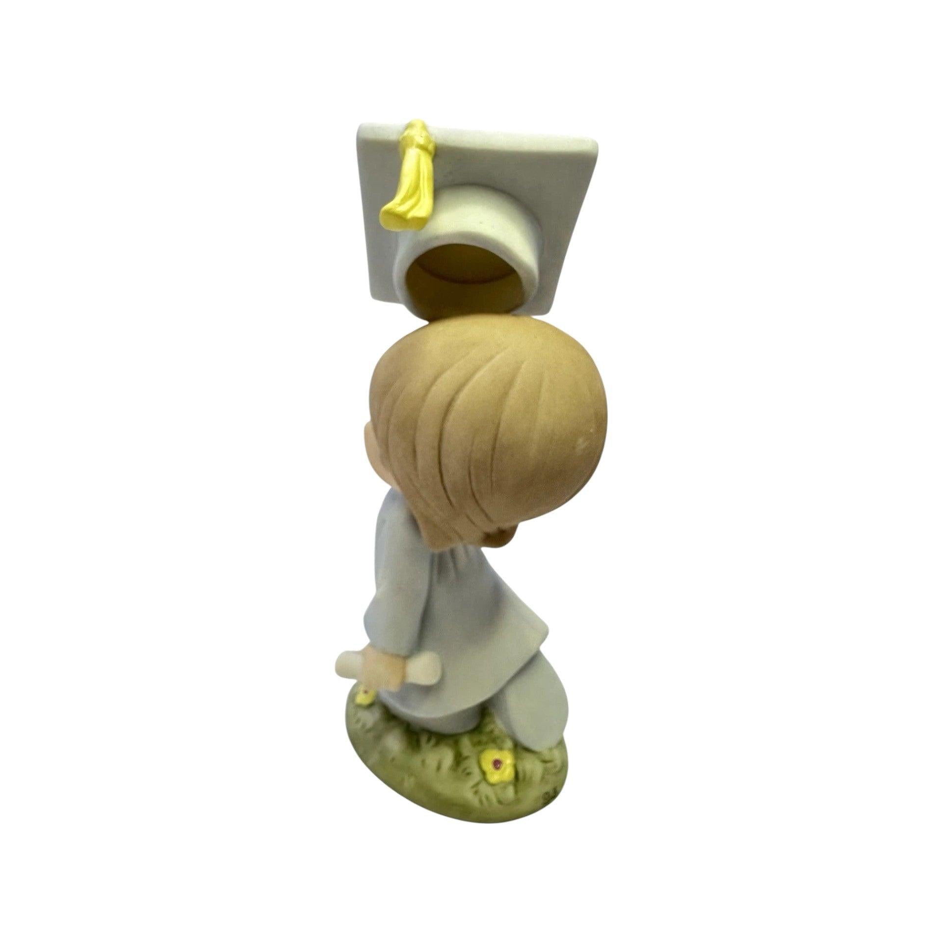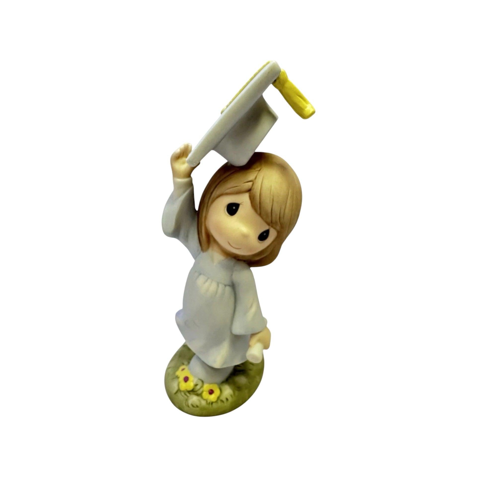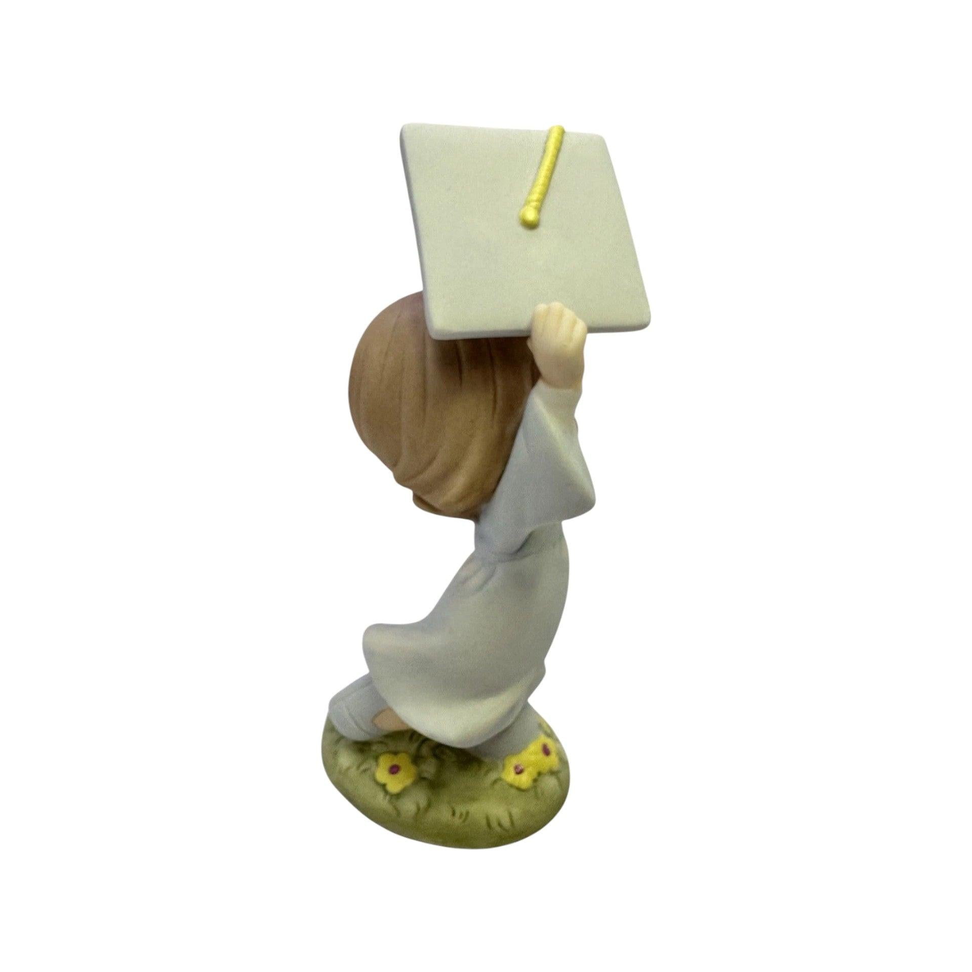 This inspirational Precious Moments figurine features a joyful graduate holding a diploma as a sweet little bird takes flight beside them, symbolizing new beginnings and exciting possibilities ahead. Styled in gentle pastels with the classic teardrop-eyed charm, this 2011 design celebrates hard work, achievement, and the confidence to soar toward the future. A perfect keepsake for graduates of any age or a sentimental addition to a Precious Moments collection.