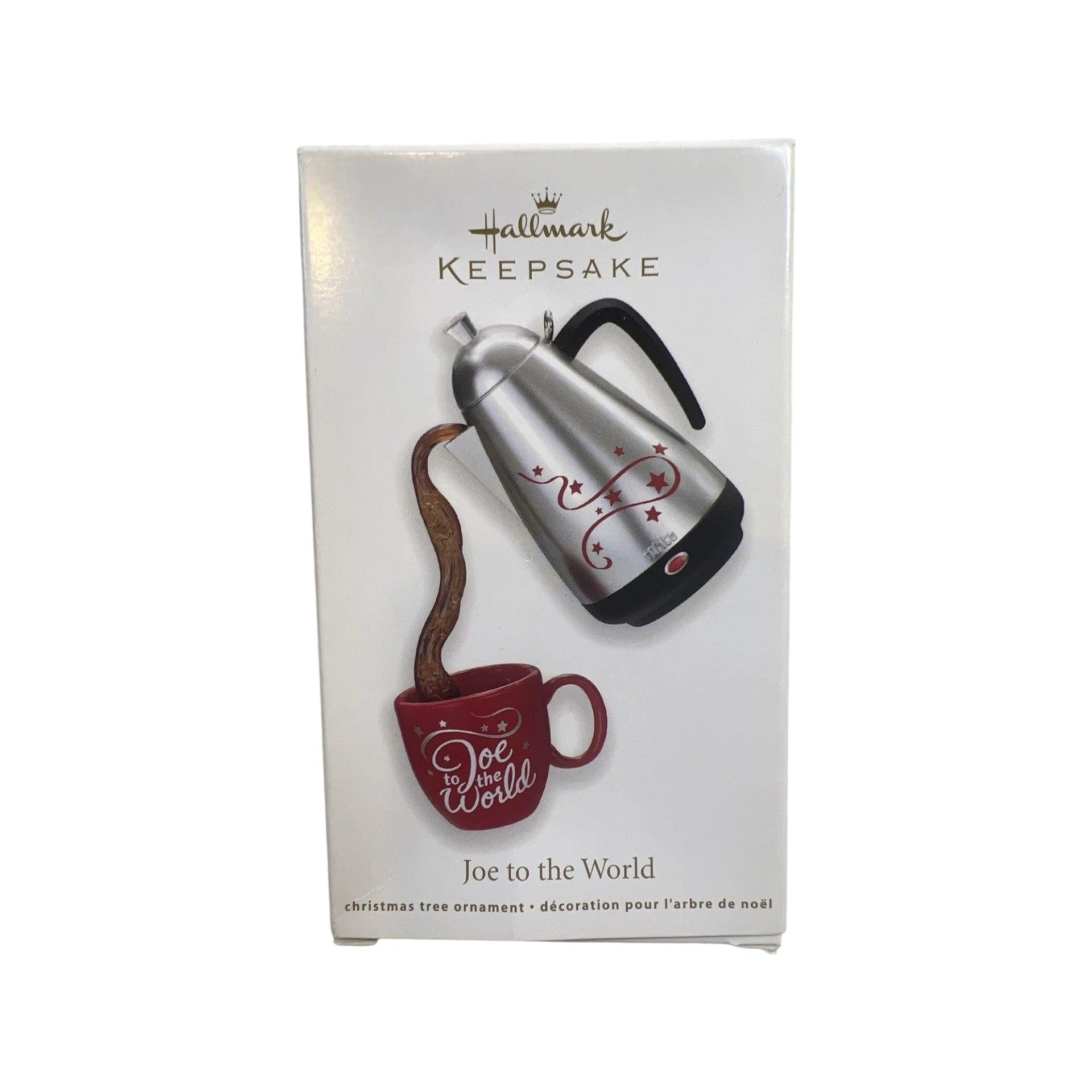 This fun and festive 2011 Hallmark ornament is perfect for coffee lovers! Joe to the World features a bright holiday-red coffee cup topped with creamy “whipped topping” and a peppermint stick, complete with a cheerful Christmas greeting on the front of the mug. Sculpted with playful detail and glossy finish, it makes a charming addition to any beverage-themed or kitchen-themed tree. The ornament includes the original sculpted piece and typically the Hallmark Keepsake box when available. No batteries or power accessories are required.