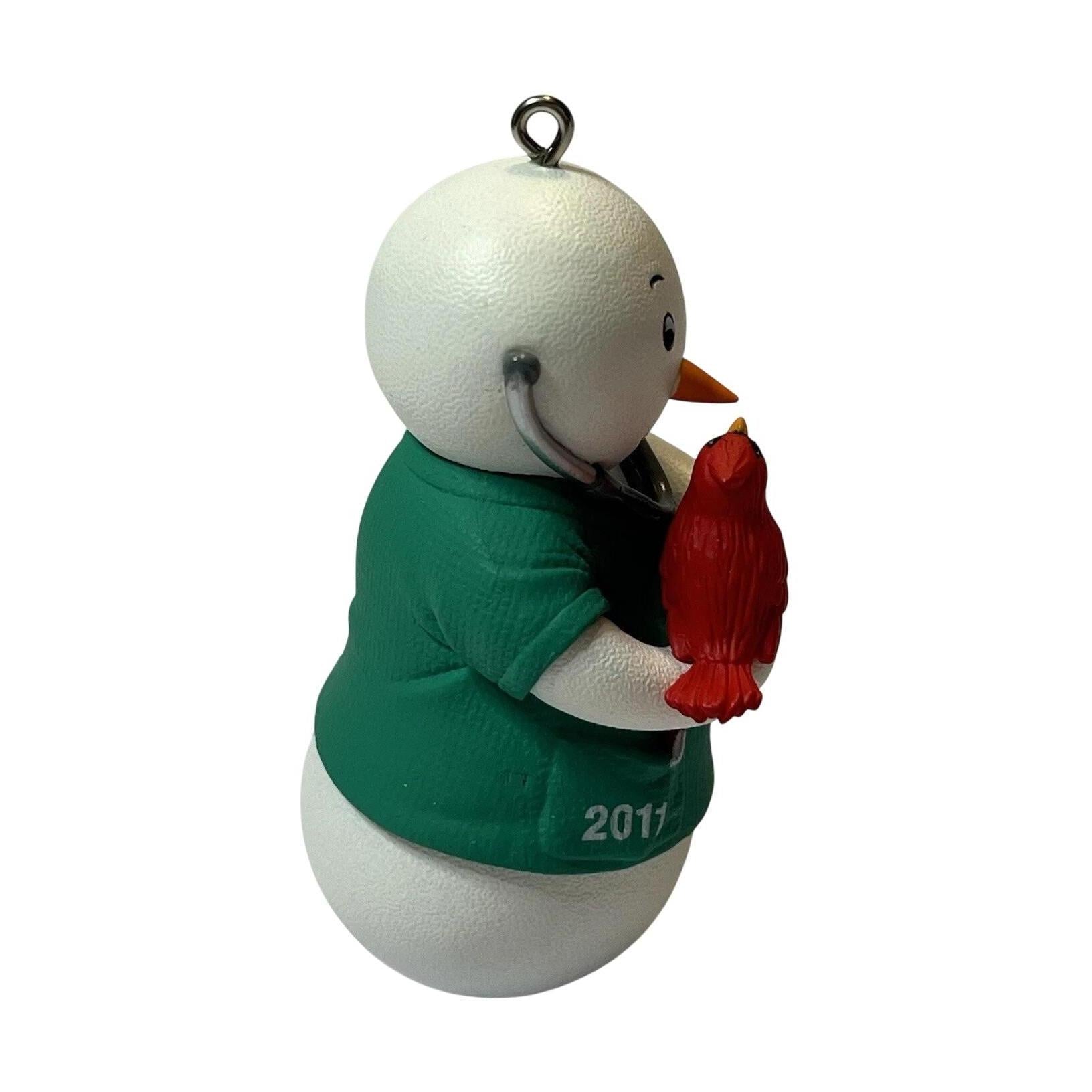 This keepsake ornament from Hallmark features a snowman dressed in medical-scrubs, complete with stethoscope and a fond interaction with a bright red cardinal—symbolizing care and compassion in the healthcare profession. With its caring-theme and cheerful depiction, this ornament provides a meaningful tribute for medical professionals or for anyone wanting to highlight kindness and service during the holidays.