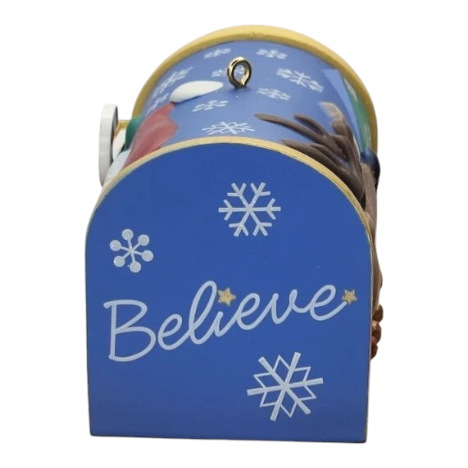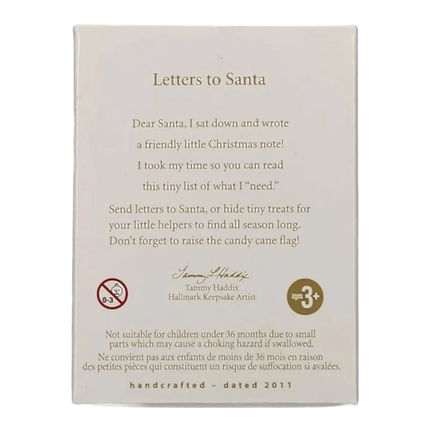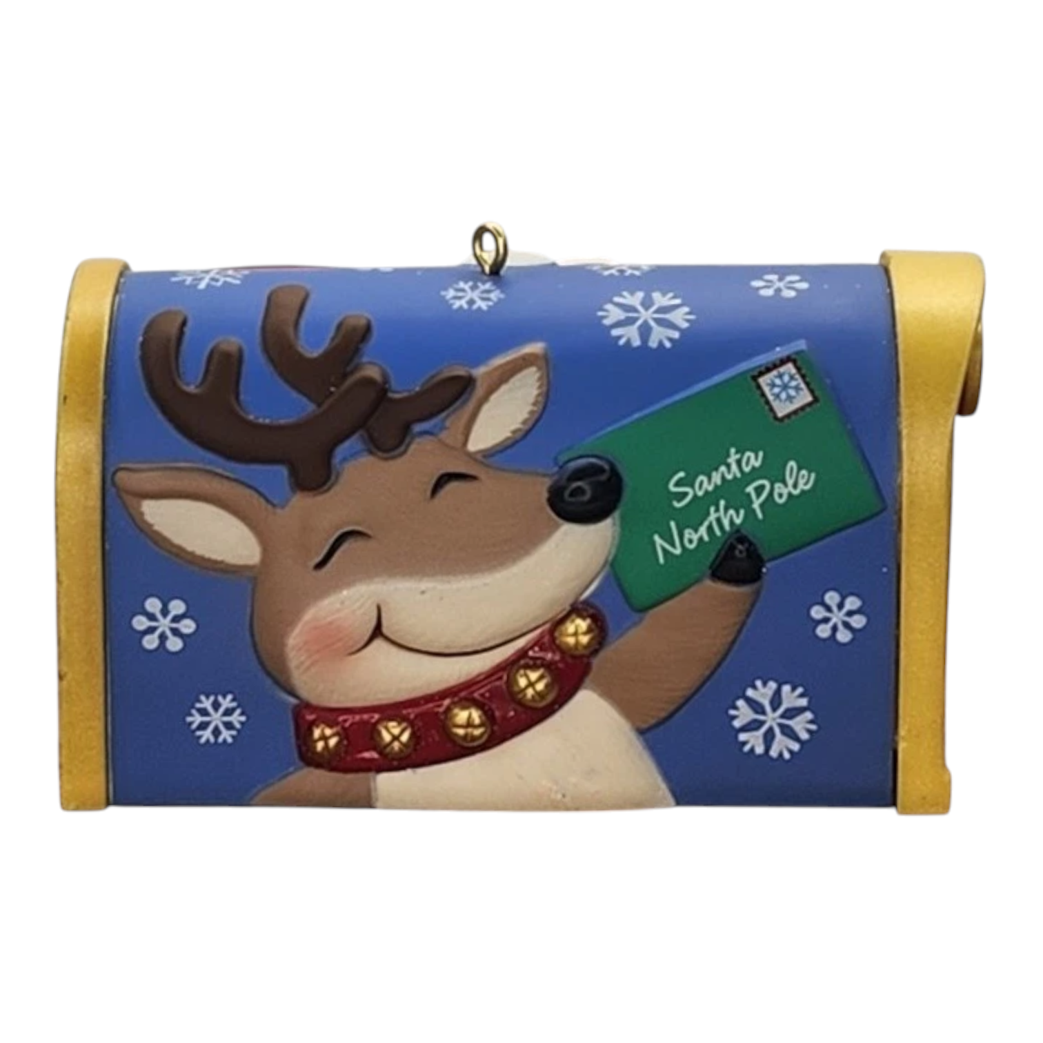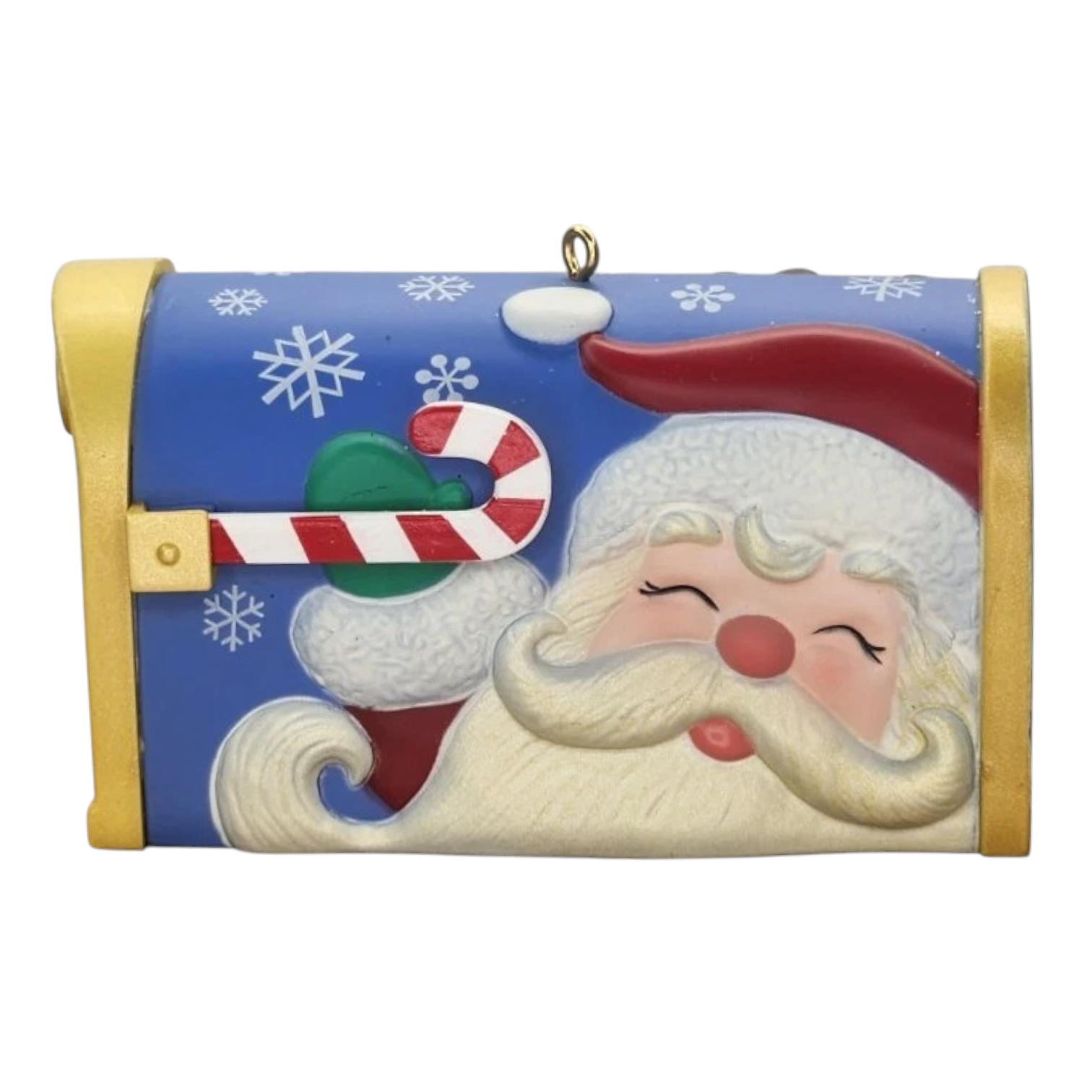 This 2011 Hallmark Keepsake features a miniature red mailbox with a candy-cane flag that you can raise, designed to hold letters to Santa or hide tiny holiday treats for helpers. Artist Tammy Haddix has crafted a festive piece that captures the tradition of writing to Santa and adds interactive fun to holiday décor. Its compact form and thematic design make it a meaningful collectible for both children’s décor and adult collectors of Hallmark ornaments.