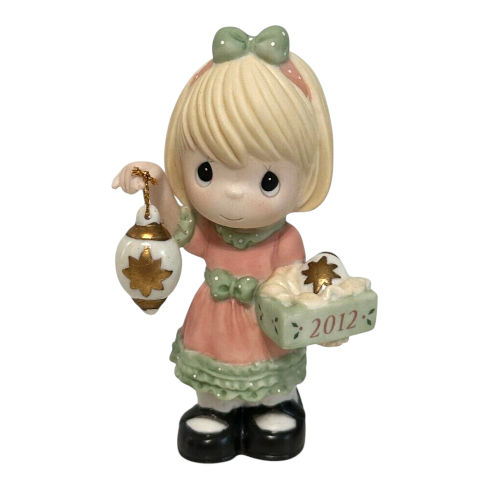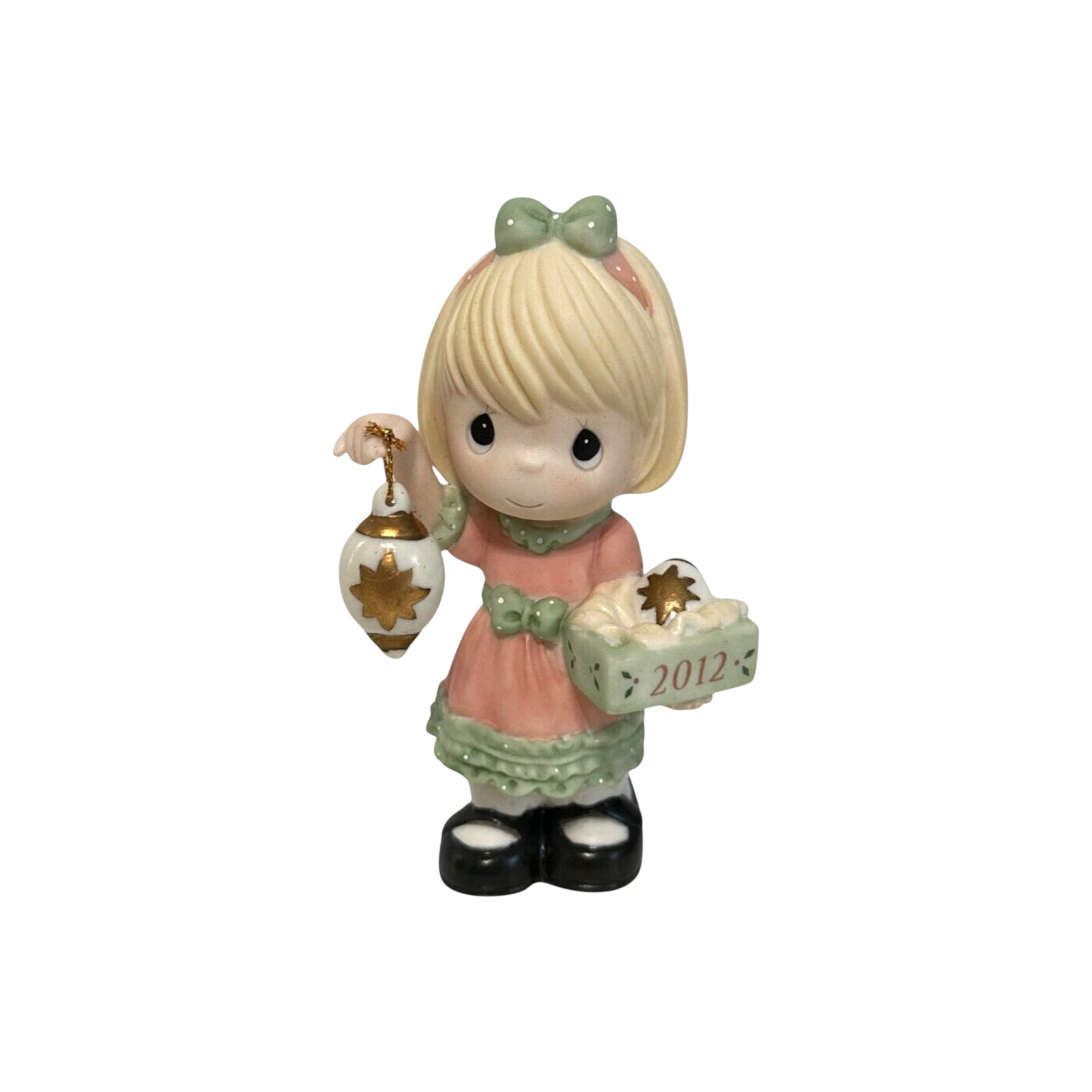 Celebrate the magic of new beginnings with this delicate figurine from the Precious Moments “Share the Gift of Love” collection—Light Your Heart With Christmas Joy (Item # 121001). This design depicts a sweet young girl tenderly holding a tiny ornament-gift box, her heart glowing with festive delight. Crafted in porcelain and presented in its original gift box, this piece makes a meaningful keepsake for the holiday season. No batteries or power cords are required—just hang or display with joy.