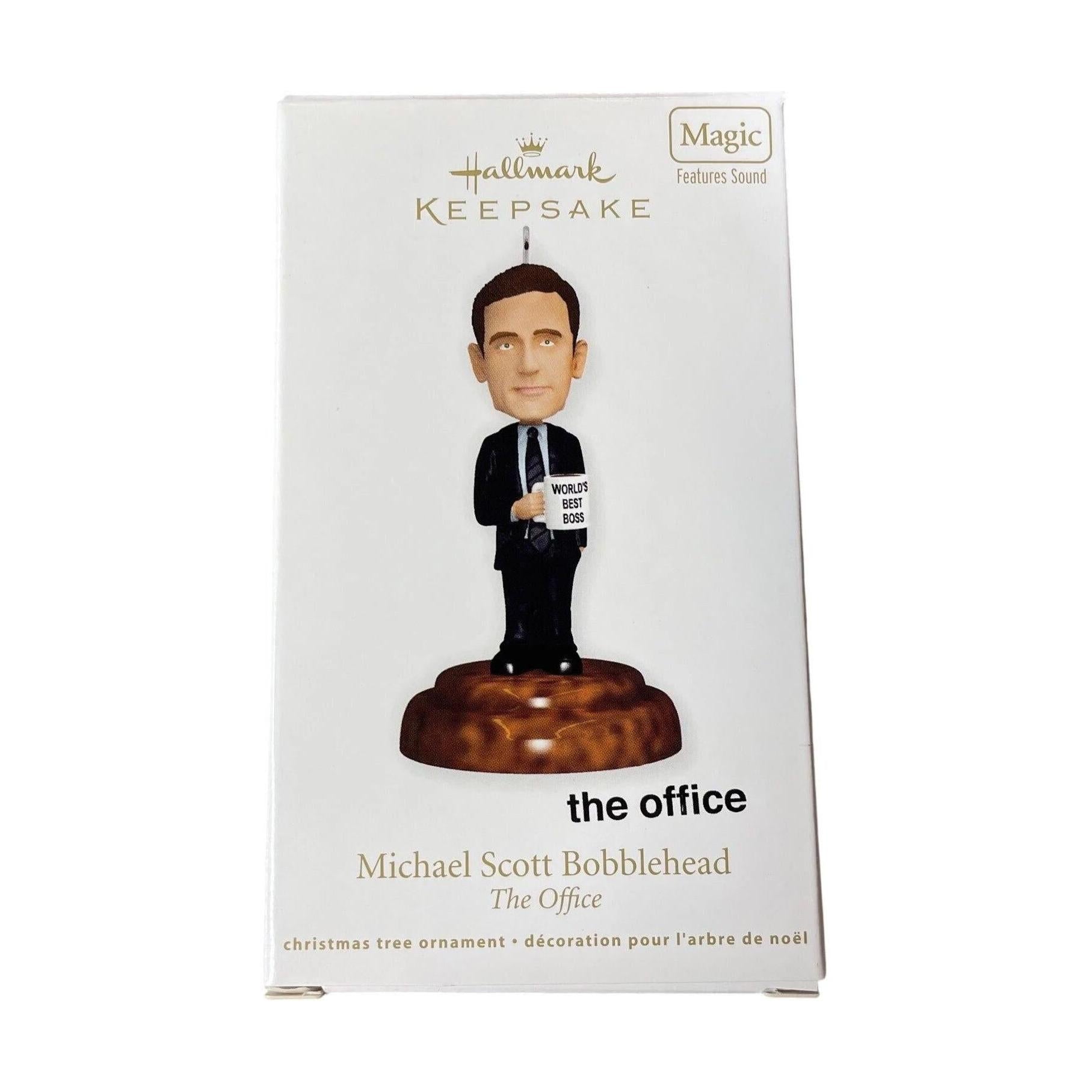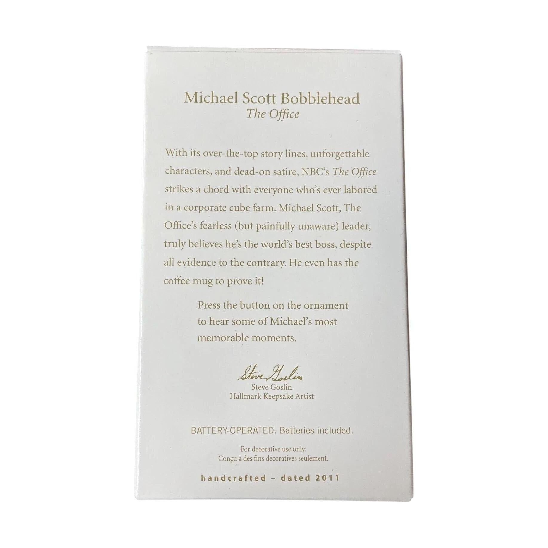 This engaging “Magic” keepsake ornament from Hallmark captures the irrepressible spirit of Michael Scott (portrayed by Steve Carell) from The Office. The bobble-head figure sports his signature suit, and when you press the button, Michael delivers some of his most memorable catch-phrases from the show. The head also gently bobs when touched, adding a lively touch. Sculpted in resin/plastic and measuring approximately 4.3″ H × 2.4″ W × 2.4″ D, it’s perfect for fans of the series and ornament collectors who appreciate interactive and licensed pieces.