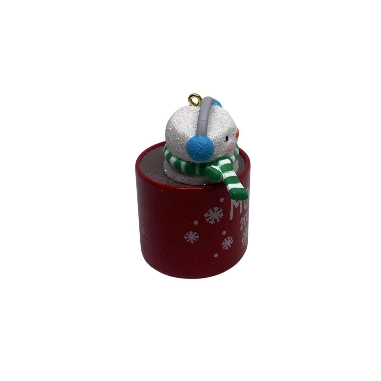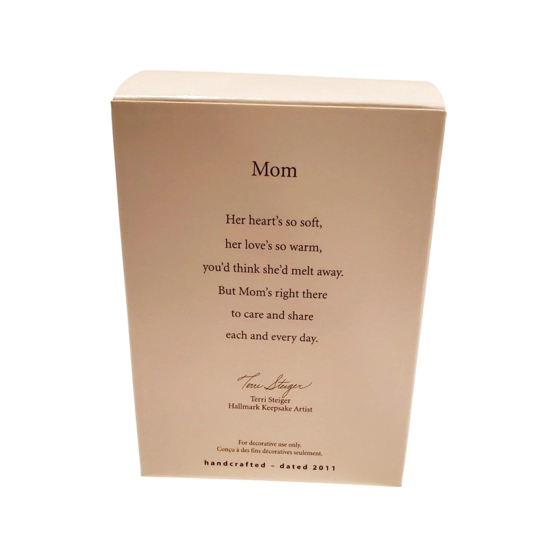 This heartfelt ornament features a red mug with “Mom 2011” printed on the side, containing a whimsical marshmallow figure wearing pink earmuffs, giving it a cozy, playful feel. The red and pink colour scheme, combined with the winter-hot-cocoa motif, makes it a warm tribute to moms and maternal themes at Christmas time. Designed for the 2011 Keepsake line and perfect for display on a tree or in a collection, this piece stands out due to its lighthearted concept and family-focused sentiment. The compact size makes it suitable even for smaller branches or as a stocking-hanger, making it a versatile gift piece and collectible.