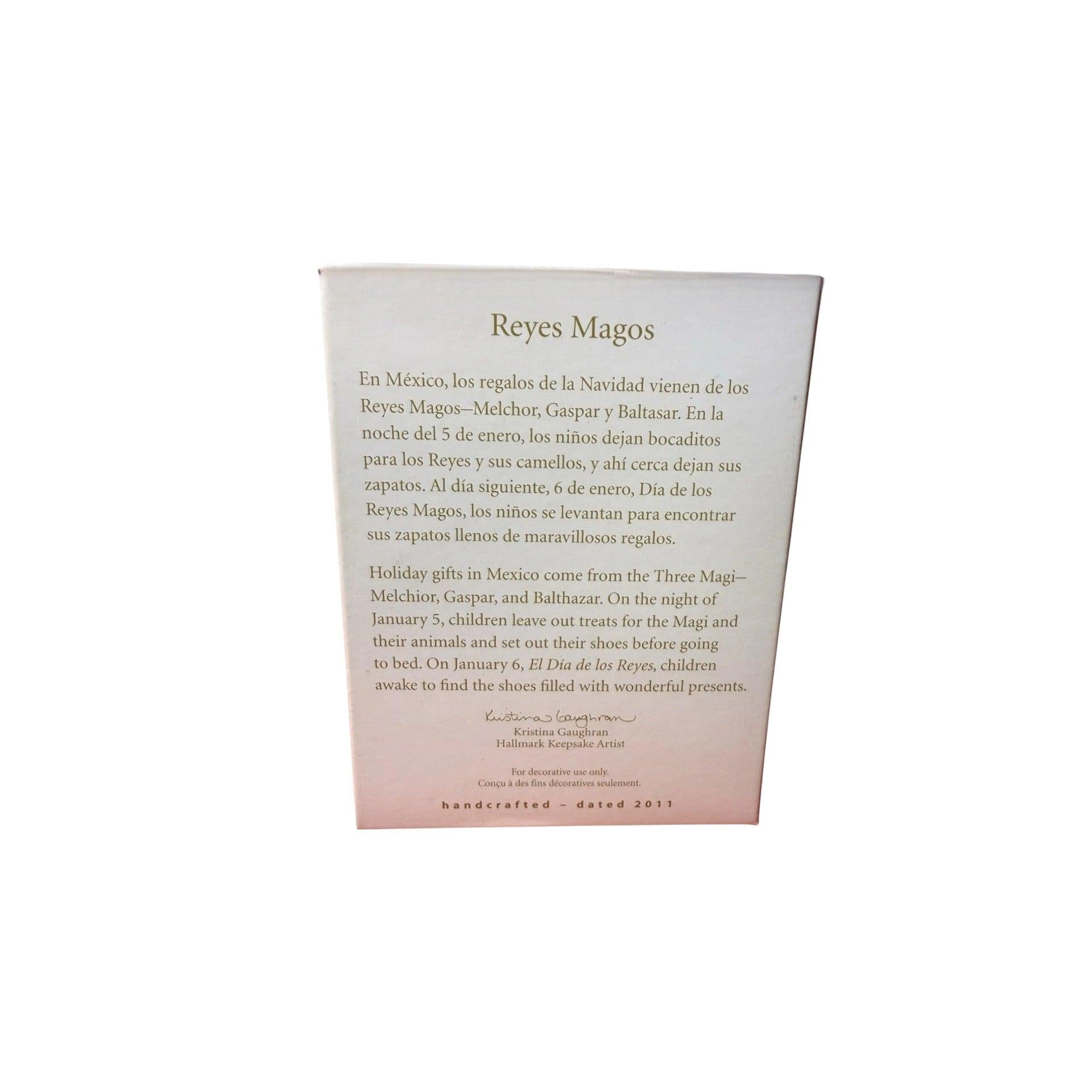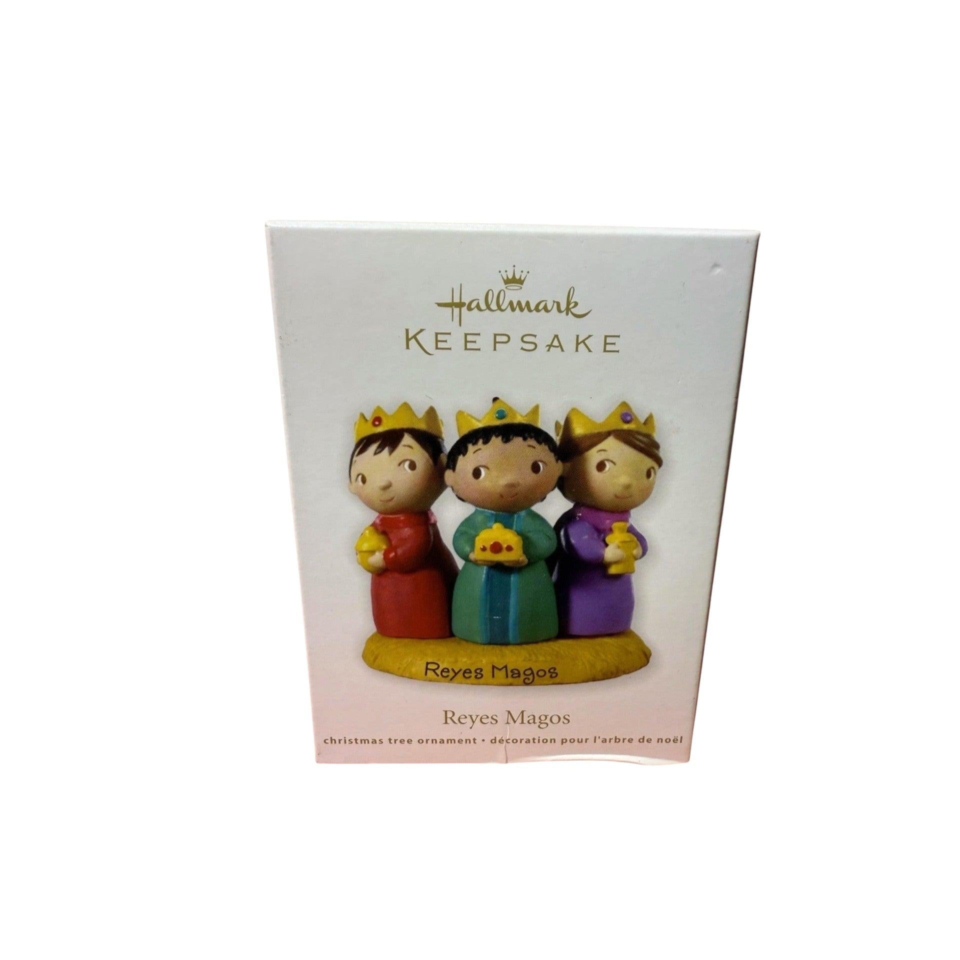 This beautiful 2011 Hallmark ornament features the Reyes Magos (Three Kings), honoring the traditional Nativity story with richly colored robes, gold detailing, and elegant sculpting. The ornament depicts the Wise Men bearing their gifts as they journey to visit the newborn King. Crafted with reverence and cultural significance, this piece adds meaningful symbolism to faith-based and Christmas Nativity displays. The ornament includes the Reyes Magos figure and typically the original Hallmark Keepsake box when available. No batteries or power components are required.