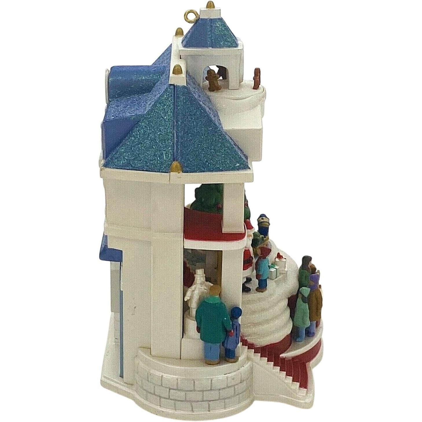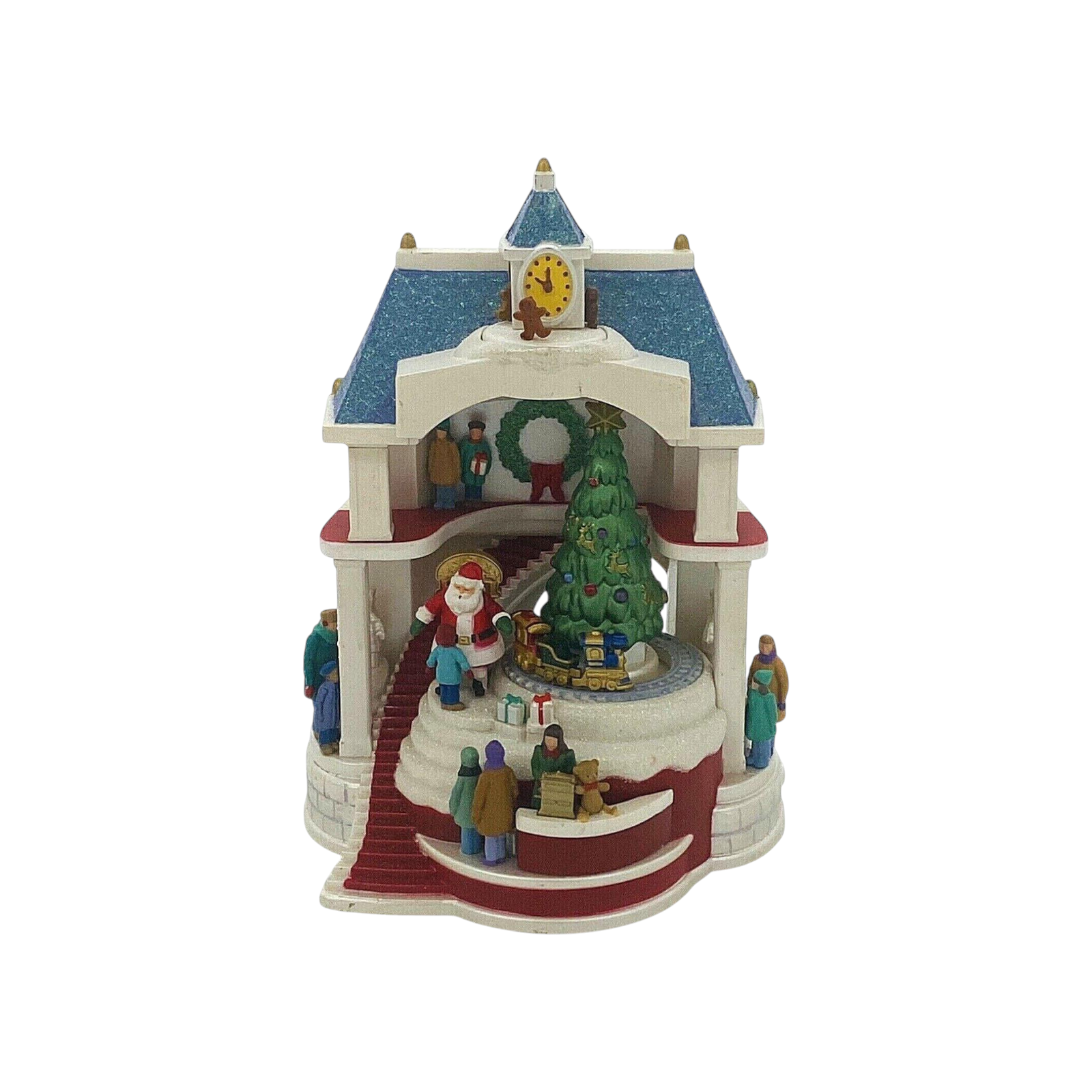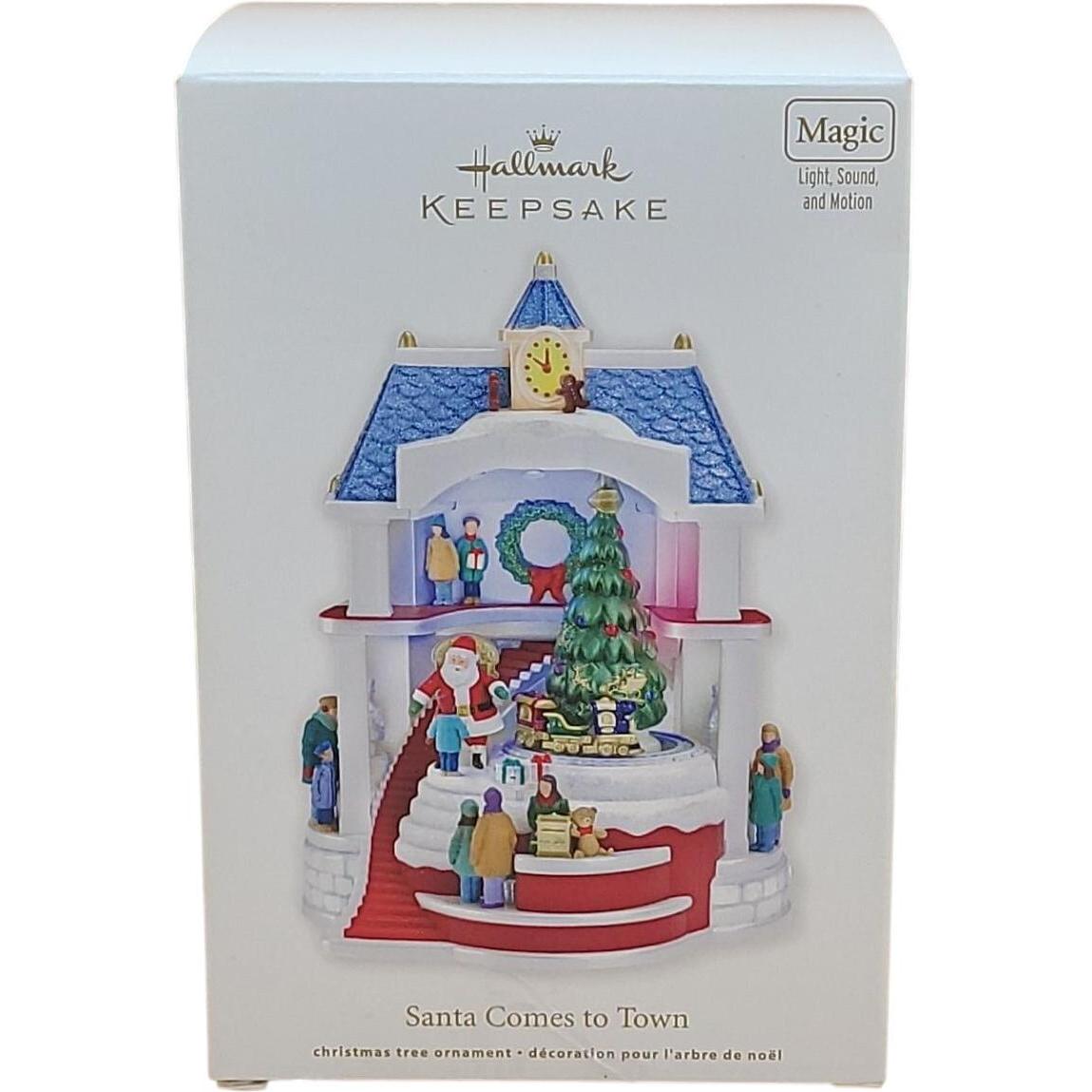 Experience the magic of the season with Santa Comes to Town (Buildings & Houses) from Hallmark’s 2011 collection. This “Magic” ornament (Item # QXG4127) features a delightful rotating train circling a Christmas tree, twinkling lights, and sound playing “We Wish You a Merry Christmas” when activated. Designed by artist Ken Crow, it captures the wonder of Santa’s arrival and the joy of a festive town setting. The ornament comes in its original box, ready to display or gift. Requires 3 AAA batteries (not included).