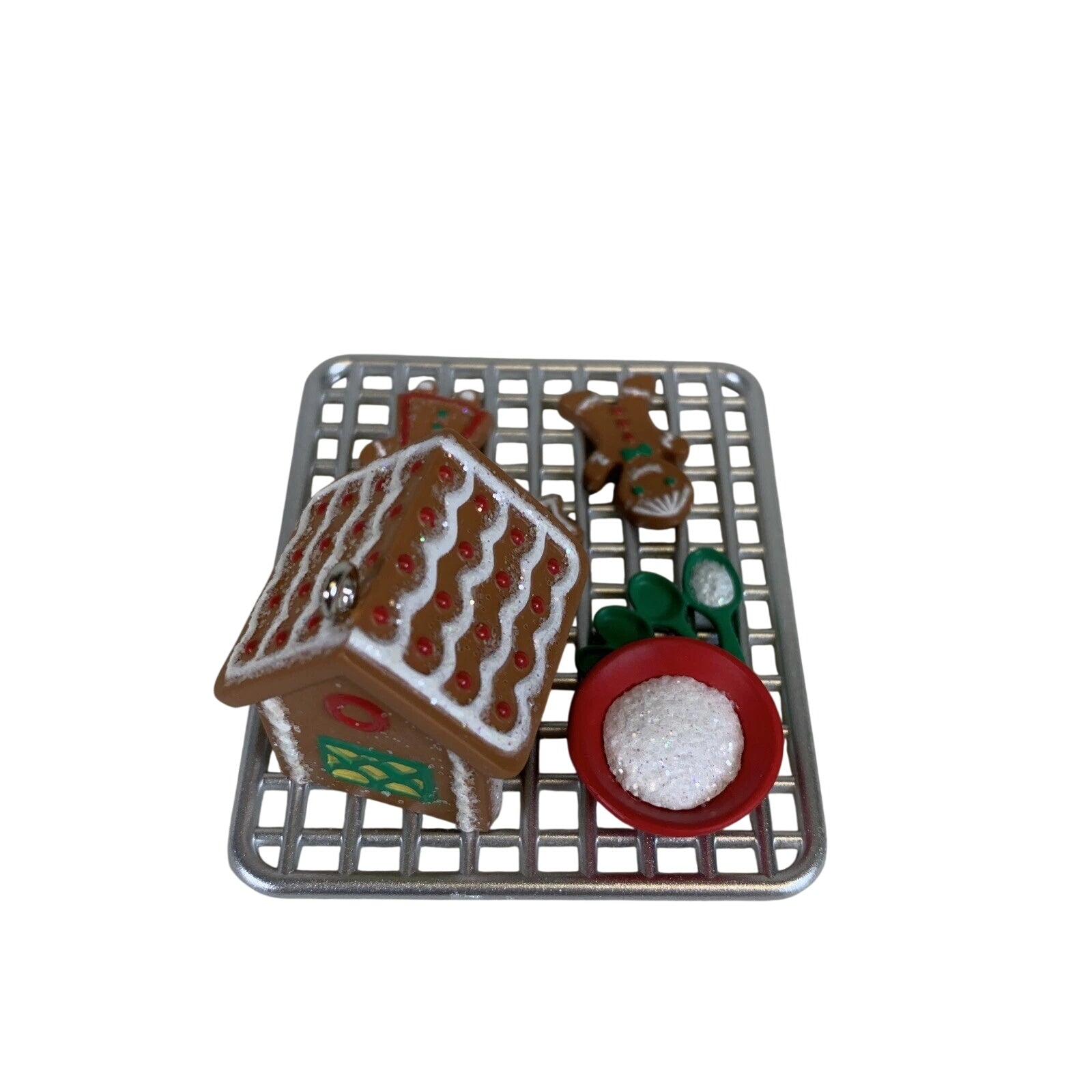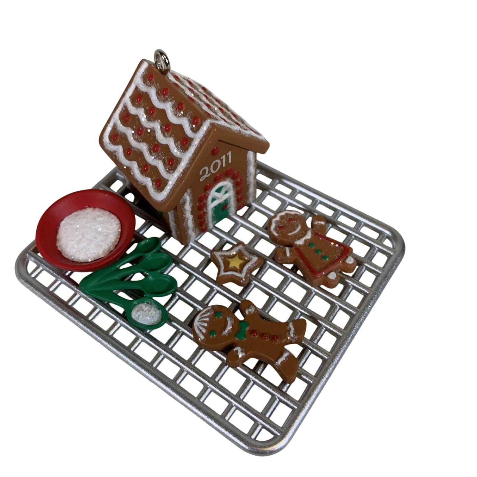 Indulge in nostalgic holiday baking with the 2011 Season’s Treatings (Season’s Treatings Series) ornament. This festive keepsake features a gingerbread house dated 2011, a boy and girl gingerbread cookie, a star-shaped cookie, sugar bowl, and measuring spoons all arranged on a silver-colored cooling rack. Packaged in its original collector’s box—typically Gold Crown exclusive and often including the hang tag—it’s ready to hang with no batteries, light strings, or cords required.
