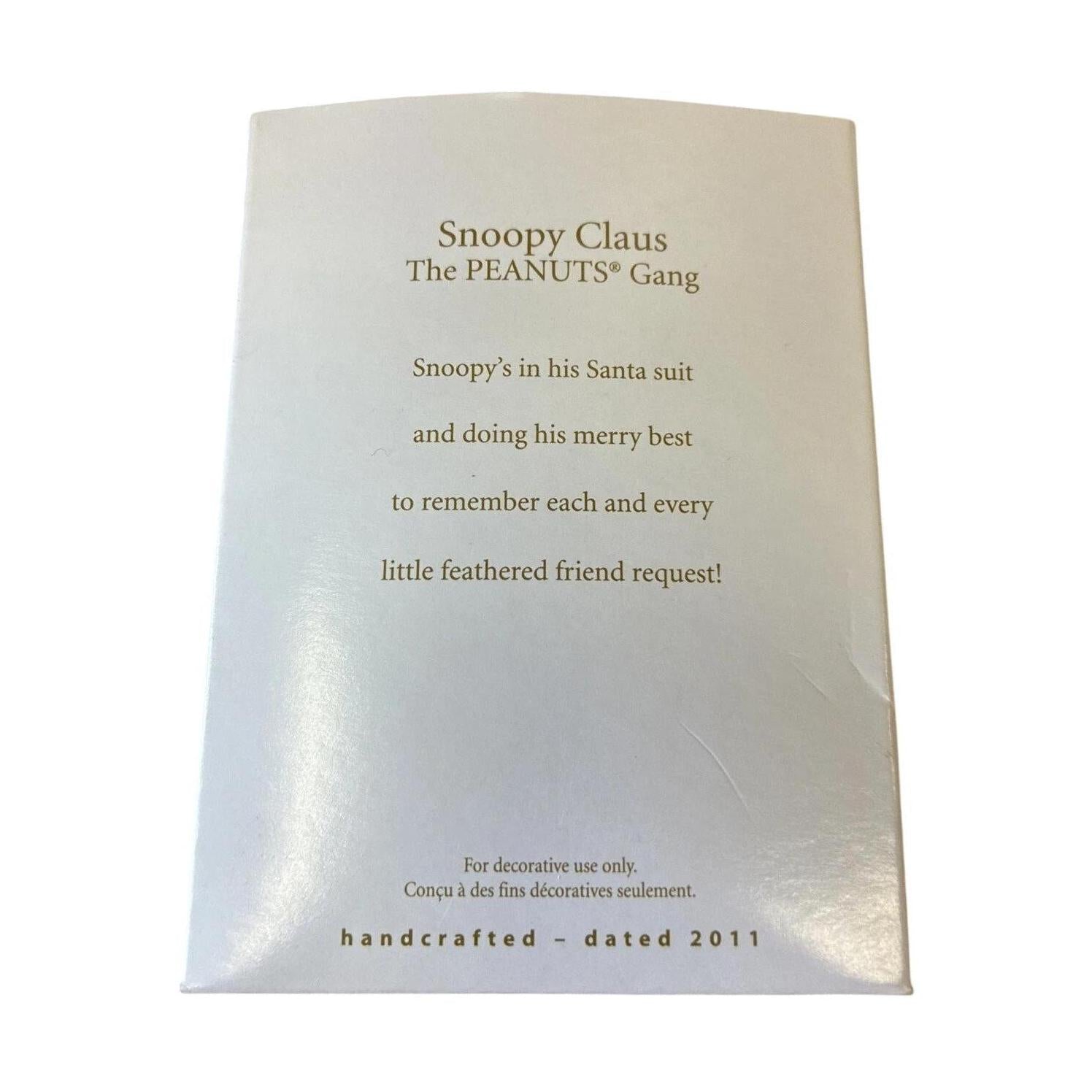 Spread festive cheer with this 2011 Snoopy Claus ornament, showcasing Snoopy dressed in a Santa suit seated in a plush armchair, clipboard in paw, as Woodstock and friends line up with their Christmas lists. Crafted in detailed resin/plastic, this charming piece is a miniature and requires no batteries or cords. Ships mint-in-box, complete with original Hallmark tags and collector insert