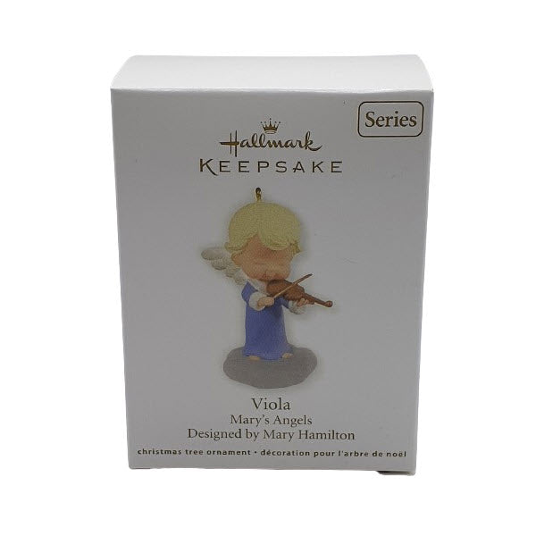 Introducing Viola, the 24th angel in Hallmark’s cherished Mary’s Angels collection, released in 2011. Viola stands gracefully on a cloud, wearing a lavender gown and playing her violin—symbolizing musical harmony and angelic grace. Mint-in-box sets typically include the ornament, hanging loop, collector’s box, and tag. This delicate keepsake is purely decorative and requires no batteries, cords, or lighting.