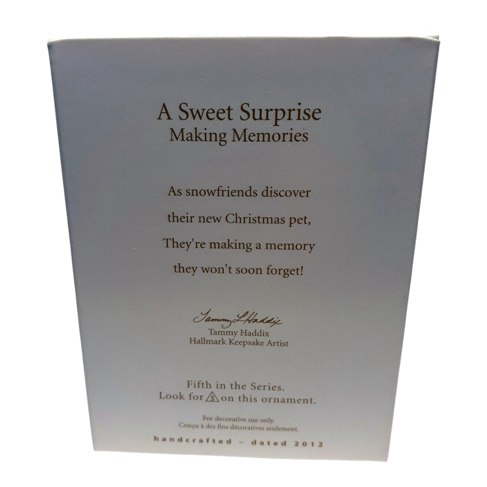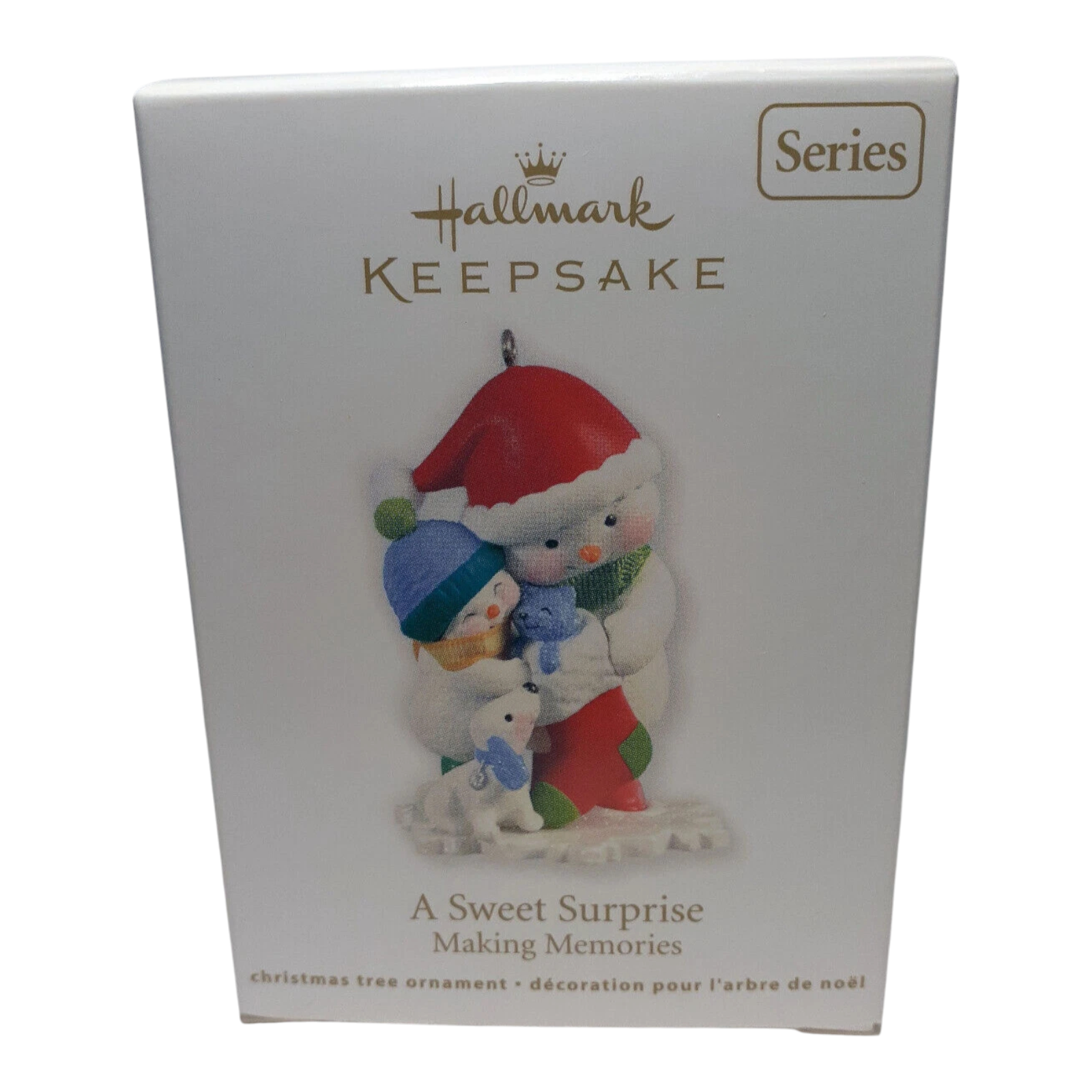 Celebrate the joy of unexpected family moments with A Sweet Surprise, the fifth ornament in Hallmark’s cherished Making Memories series. Crafted by artist Tammy Haddix, this heartwarming keepsake shows a snowman parent holding a baby snowperson as they peer into a Christmas stocking—only to discover a cozy little kitten hiding inside. This Gold Crown Exclusive arrives in its original box and requires no batteries or power—just hang and embrace the sweet holiday moment.