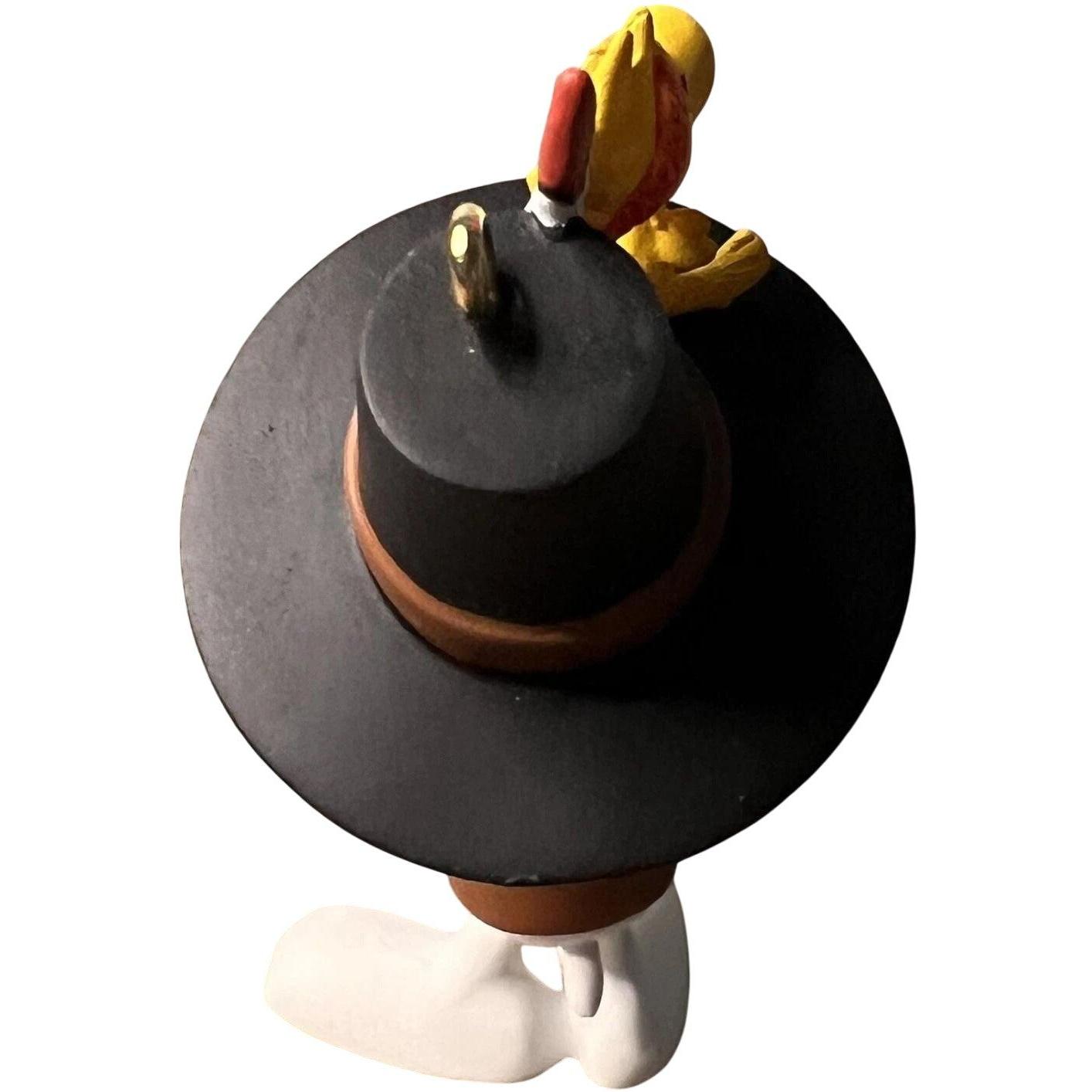 Bring a whimsical twist to your Thanksgiving decor with this 2012 A Thanksgiving Feast ornament. Snoopy, dressed in a pilgrim’s hat and attire, stands proudly holding a plate of Thanksgiving treats while Woodstock perches atop his hat adorned with a Native American-style feather. This charming miniature piece requires no batteries or cords and arrives mint-in-box with original Hallmark tags and collector insert