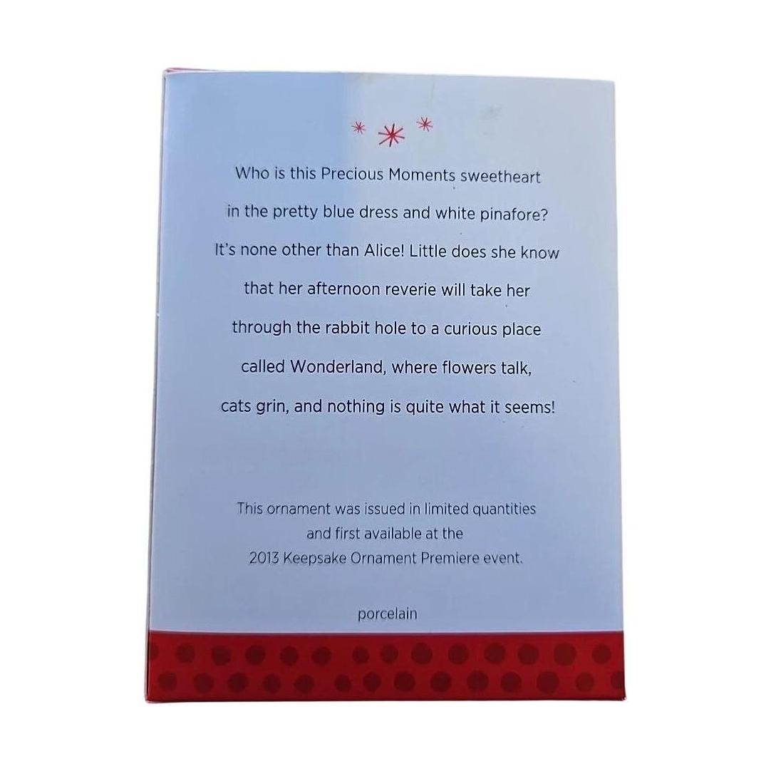 Step into a whimsical world with the 2013 Alice in Wonderland Keepsake ornament, a Limited Edition piece from Hallmark’s Precious Moments collection. Rendered in delicate porcelain, this Gold Crown exclusive captures Alice sweetly crafting a wreath of flowers for her curious kitten, Dinah, unaware of the magical adventures awaiting her. Measuring approximately 2 ¾″ wide, it comes beautifully boxed and ready to hang—no batteries required.