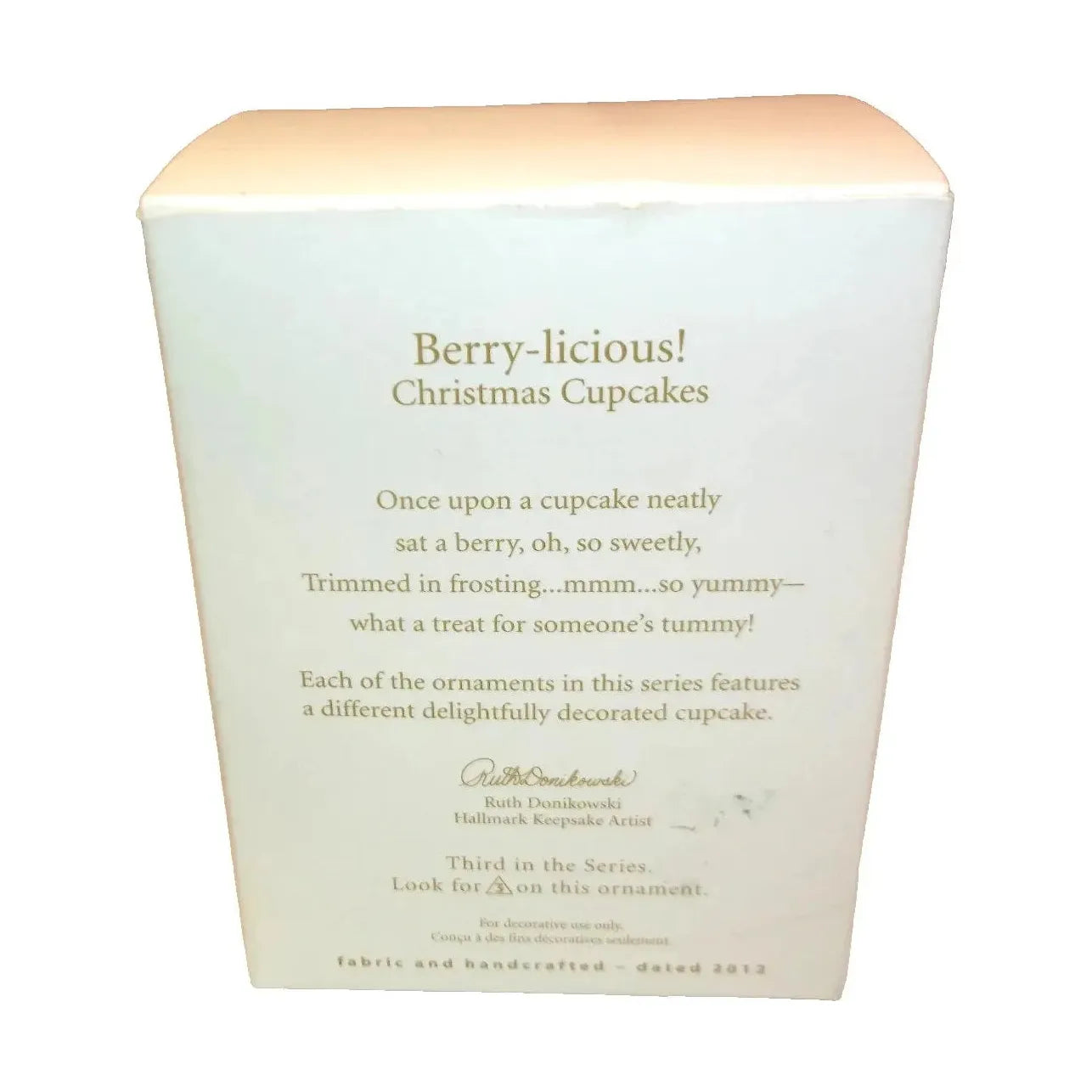Indulge in festive sweetness with the 2012 "Berry‑Licious!" ornament from the Christmas Cupcakes series. This charming piece features a rich chocolate cupcake nestled in a green foil liner, topped with fluffy pink frosting and a plump red strawberry. Crafted from felt, fabric, and mixed materials, it’s handmade and full of whimsical charm. The ornament arrives in its original Hallmark keepsake box with hang tag—no batteries, cords, or lights required—simply unwrap, hang, and enjoy!