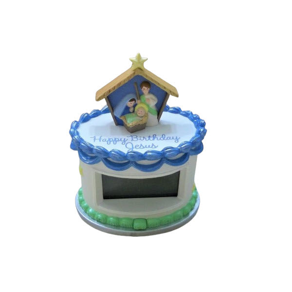 This unique “Magic” keepsake ornament from Hallmark invites families to focus on the true meaning of the season. Shaped like a festive white frosted cake adorned with a nativity scene on top, the ornament includes a digital countdown display showing days, hours, minutes and seconds until Jesus’ birthday. Press the touch-activated pad and it plays a cheerful rendition of “Happy Birthday.” The front features the inscription “For unto us a child is born. Isaiah 9:6.” Its interactive design, thoughtful message and decorative appeal make it a meaningful addition to holiday décor and a poignant collectible.