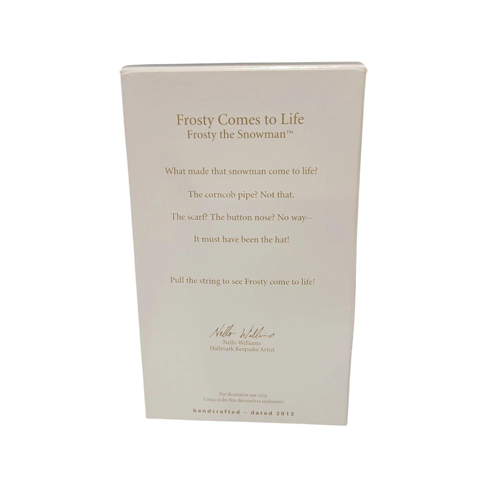 Revisit the enchanting magic of Frosty as he springs to life with a playful tug! The 2012 Frosty Comes to Life ornament, part of Hallmark’s Frosty the Snowman collection, invites you to pull a string and watch Frosty animate before your eyes—complete with lively movement and heartfelt nostalgia. Designed by artist Nello Williams, this interactive Keepsake ornament stands approximately 3¾″ tall and arrives mint-in-box with no additional power or batteries necessary—just a pull and Frosty awakens to spread holiday cheer.