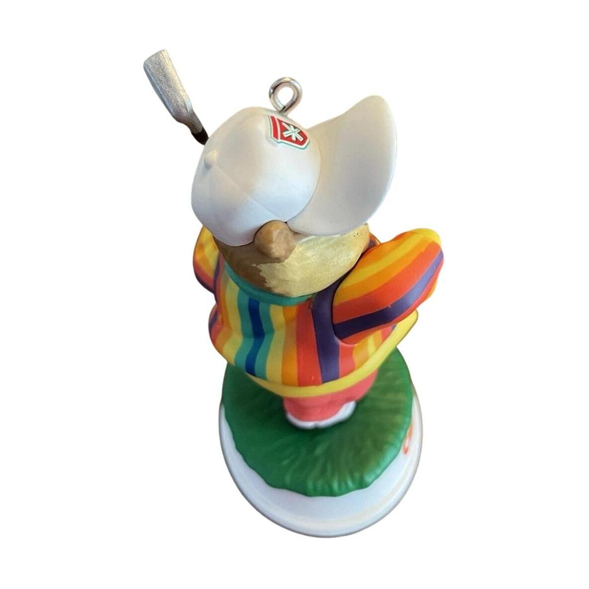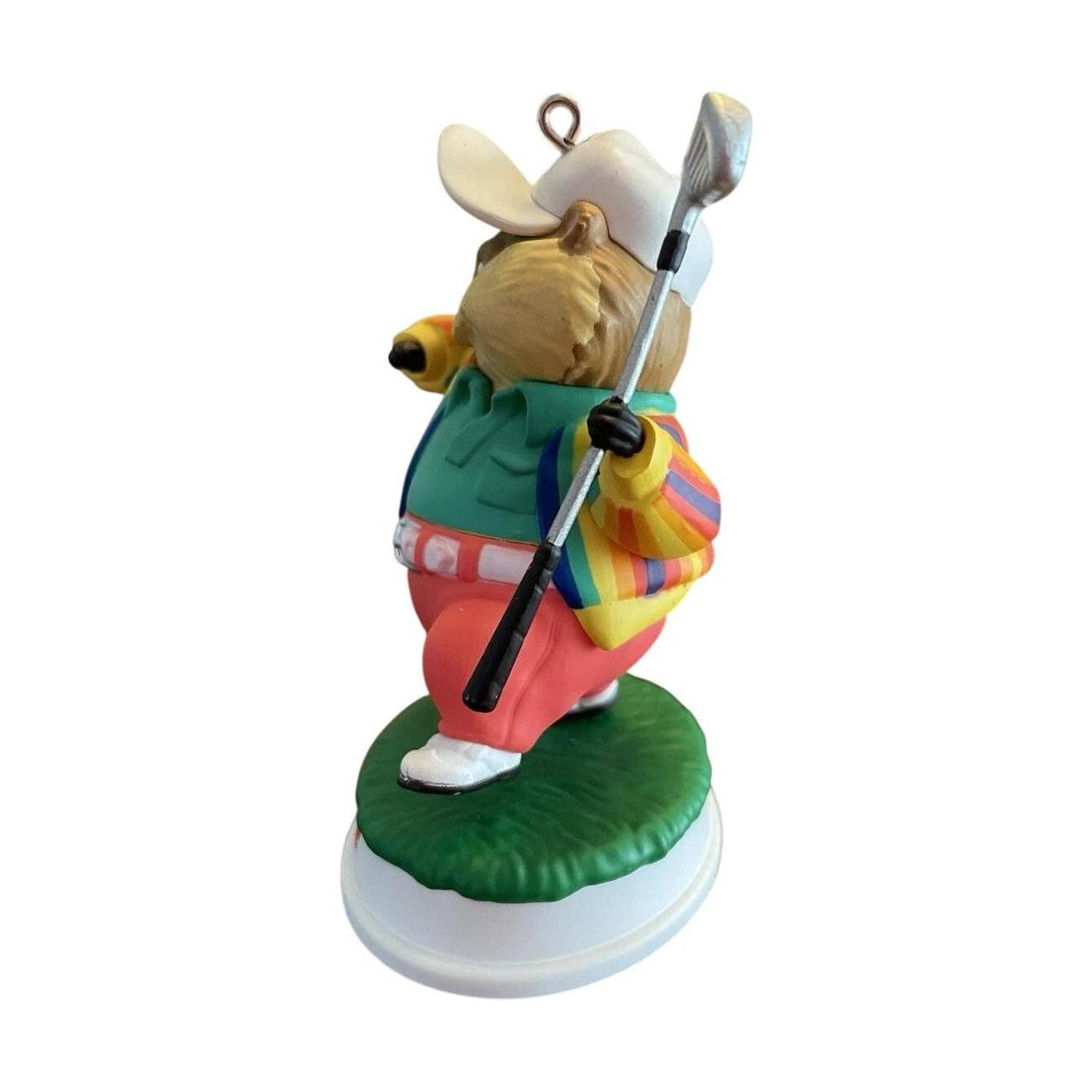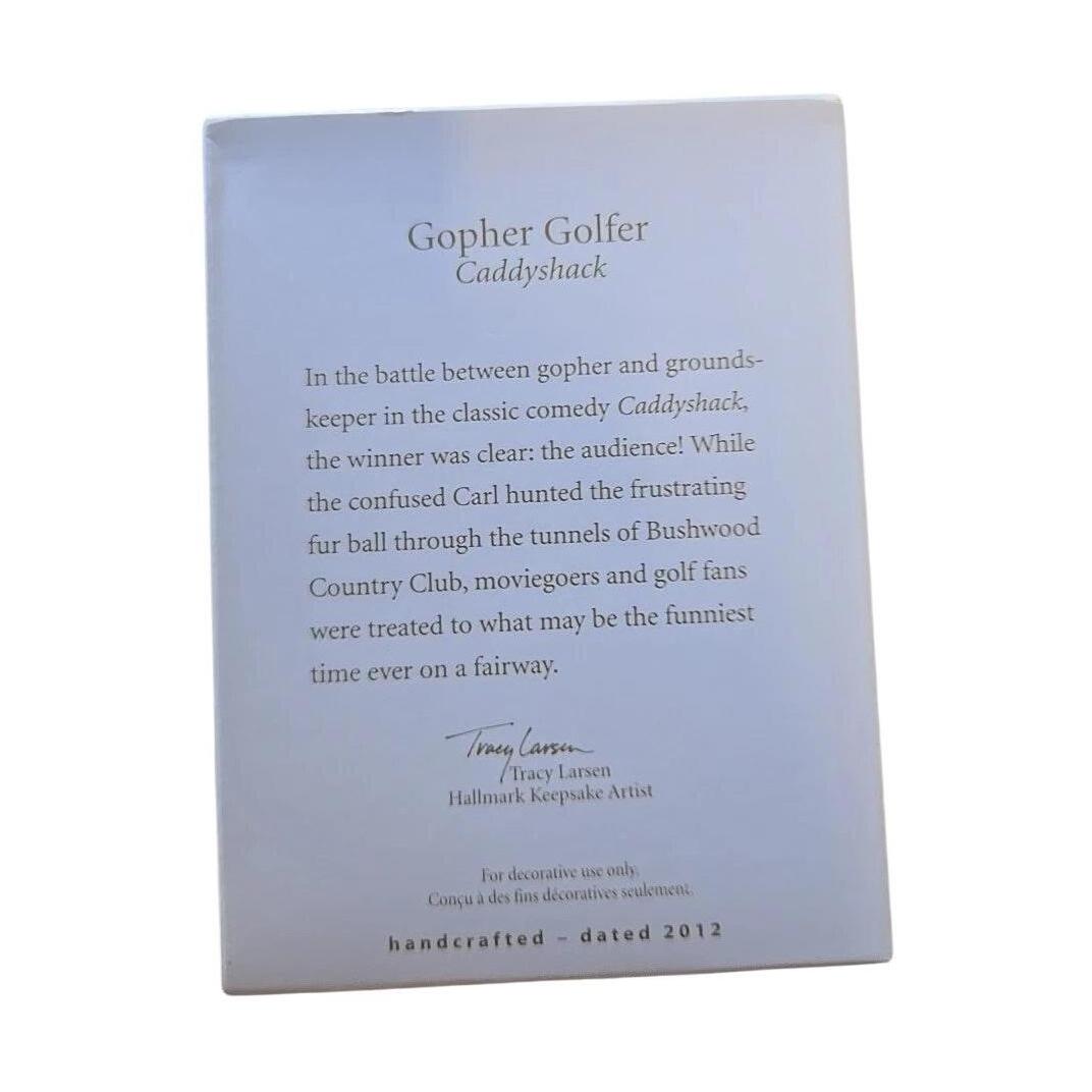 Tee off your holiday season with a swing of laughter! This whimsical Gopher Golfer ornament pays homage to the iconic mischief-maker from the beloved film Caddyshack. Crafted from mixed materials and vividly hand-painted, the gopher sports a rainbow-striped sweater, red pants, and a golf club in hand—capturing its cheeky, celebratory "victory dance" moment perfectly. Designed by Tracy Larsen, this Keepsake ornament arrives new-in-box and is ready to hang—no batteries or cords needed—just plenty of nostalgia and movie magic.