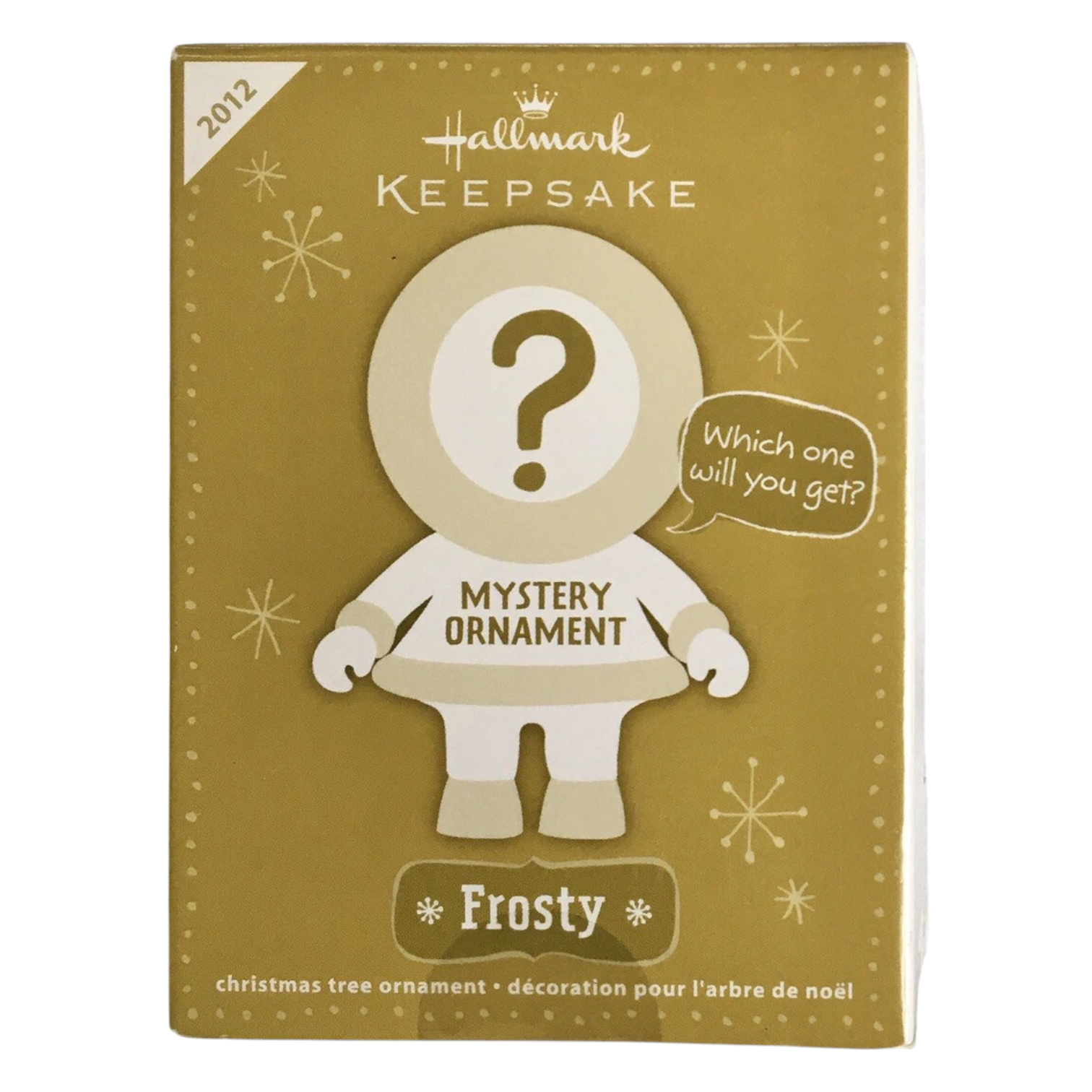 Unwrap a surprise with the 2012 Mystery Ornament, a festive Frosty Friends collectible (Item Number QK5001). Each sealed golden box holds one of three charming designs – Astronaut Frosty, Winter Fairy, or Frosty's Sweet Ride (Santa). Crafted from high‑quality resin and standing approximately 3″ tall, the ornament arrives mint-in-box with hang tag. No batteries, cords, or lights are required—simply open the mystery and enjoy the festive delight.
