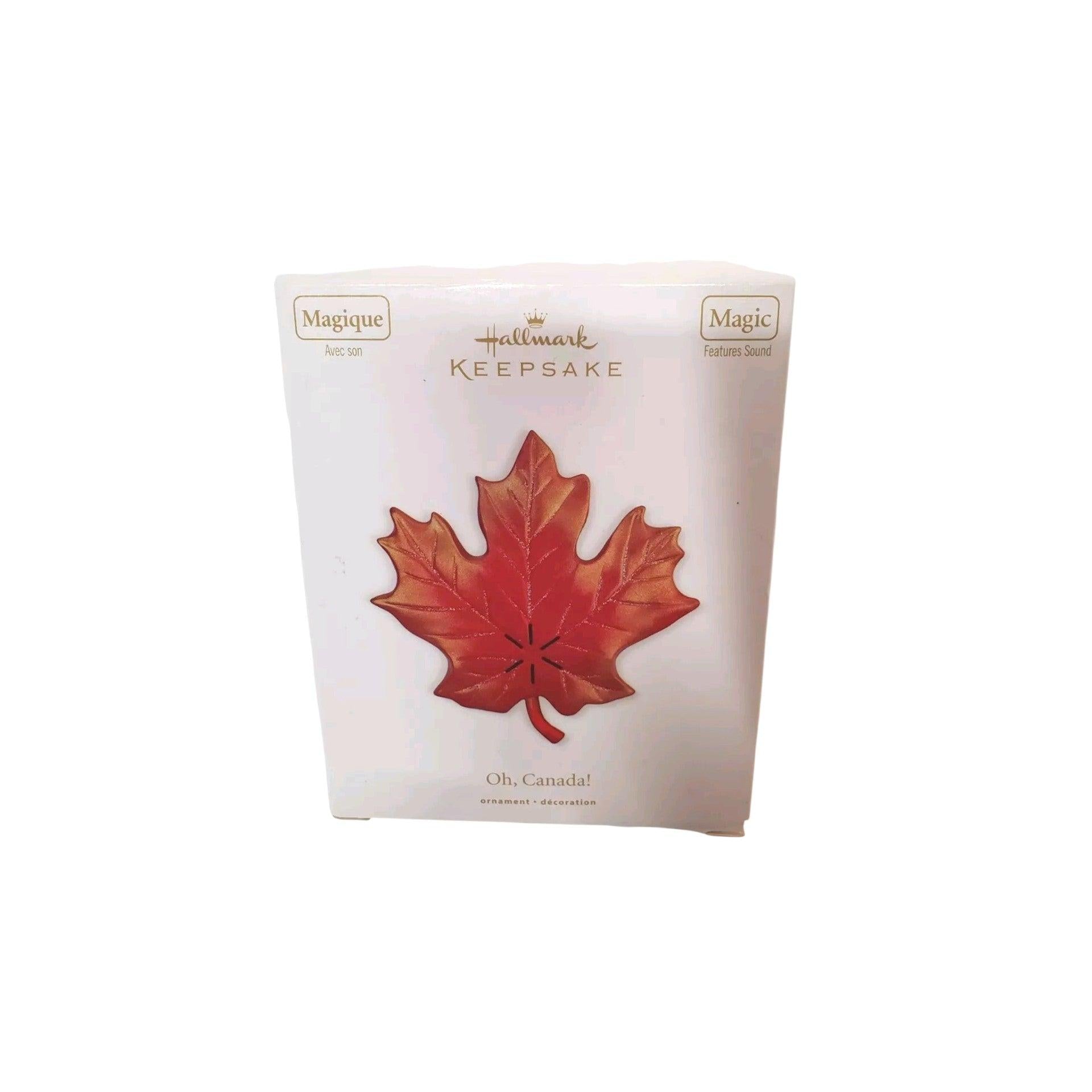 Celebrate Canada in festive style with Oh, Canada!, a bold maple leaf ornament finished in warm red-and-gold tones and designed as a Hallmark “Magic” musical piece. When activated, it plays sound/music (often described in listings as a musical feature), making it a standout for Canada-themed trees, travel collections, or patriotic holiday décor. In new condition, it typically includes the ornament packaged in its original box for safe storage and gifting.