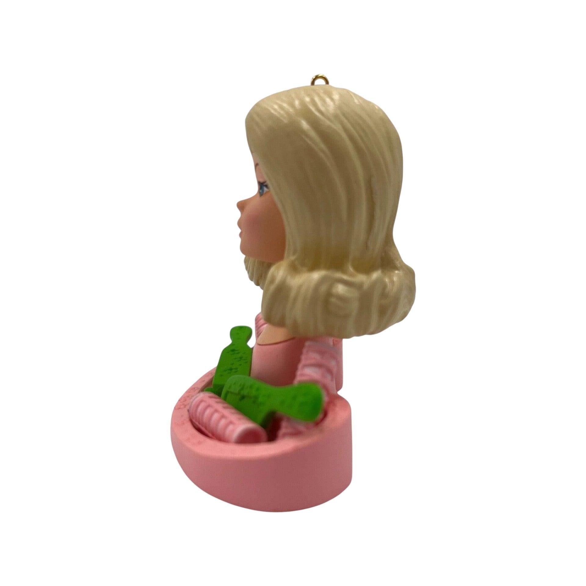 Unleash retro charm this holiday season with the 2012 Quick Curl Barbie Beauty Center (Barbie) ornament—a delightful nod to the iconic 1970s playset. This detailed keepsake showcases Barbie at her vintage beauty station, complete with brushes, rollers, and styling accessories in vibrant colors that evoke stylish imagination. Released as one of the four mystery reveal ornaments during the 2012 October Ornament Debut, it quickly became a seasonal highlight for collectors. The ornament arrives with its original Keepsake box and Hallmark tag, and requires no batteries or cords—just pure nostalgic appeal.