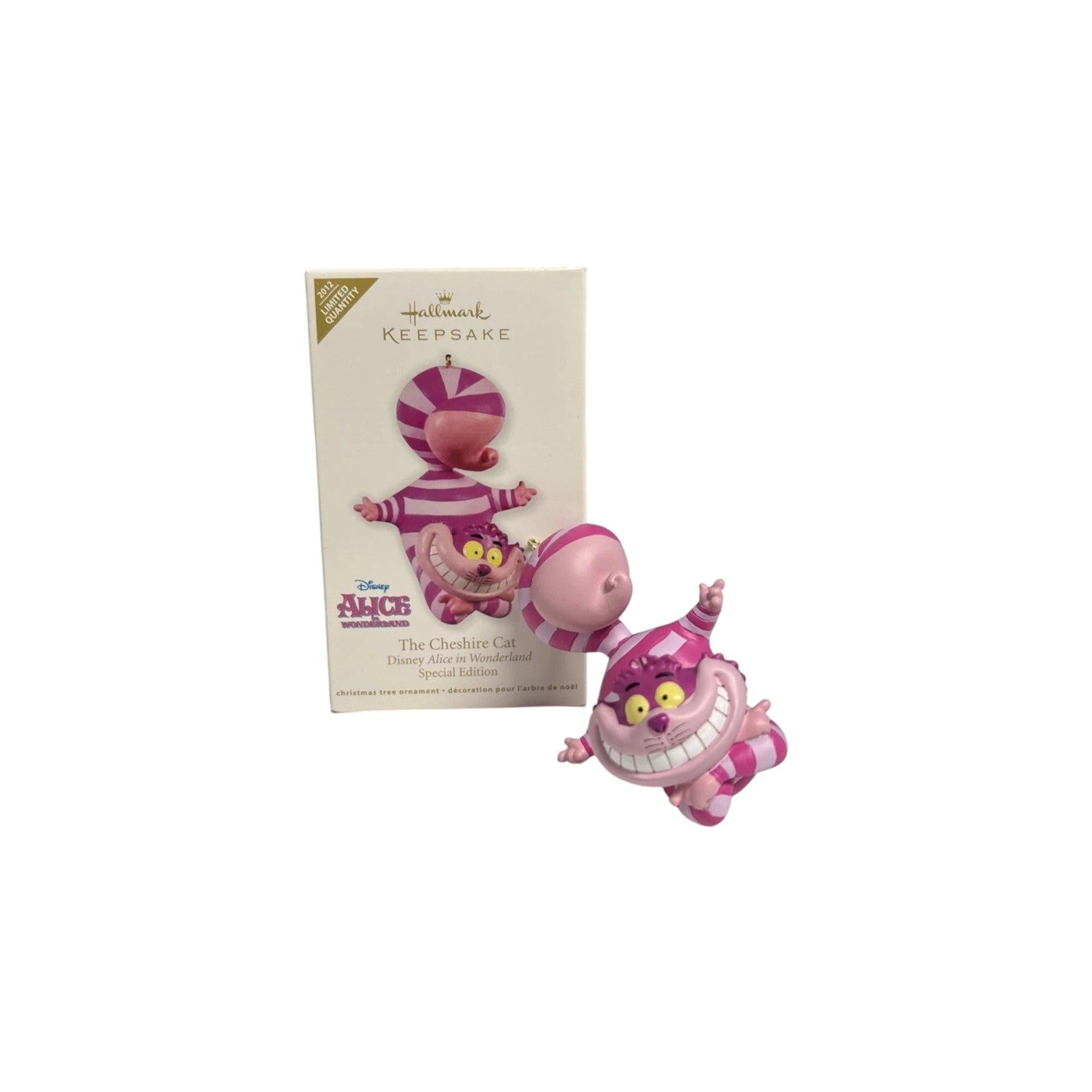 Step into the whimsical world of Disney with The Cheshire Cat ornament from Hallmark, inspired by Alice in Wonderland. Introduced in 2012, this playful design features the mischievous Cheshire Cat with his iconic wide grin and vibrant purple-and-pink striping, perfectly capturing his curious and mysterious personality. With expressive sculpting and bold colors, this ornament is a standout piece for Disney fans and collectors of classic animated characters. The ornament comes packaged in its original Hallmark Keepsake gift box with packaging materials. This ornament is decorative only and does not require batteries, cords, or light strings.