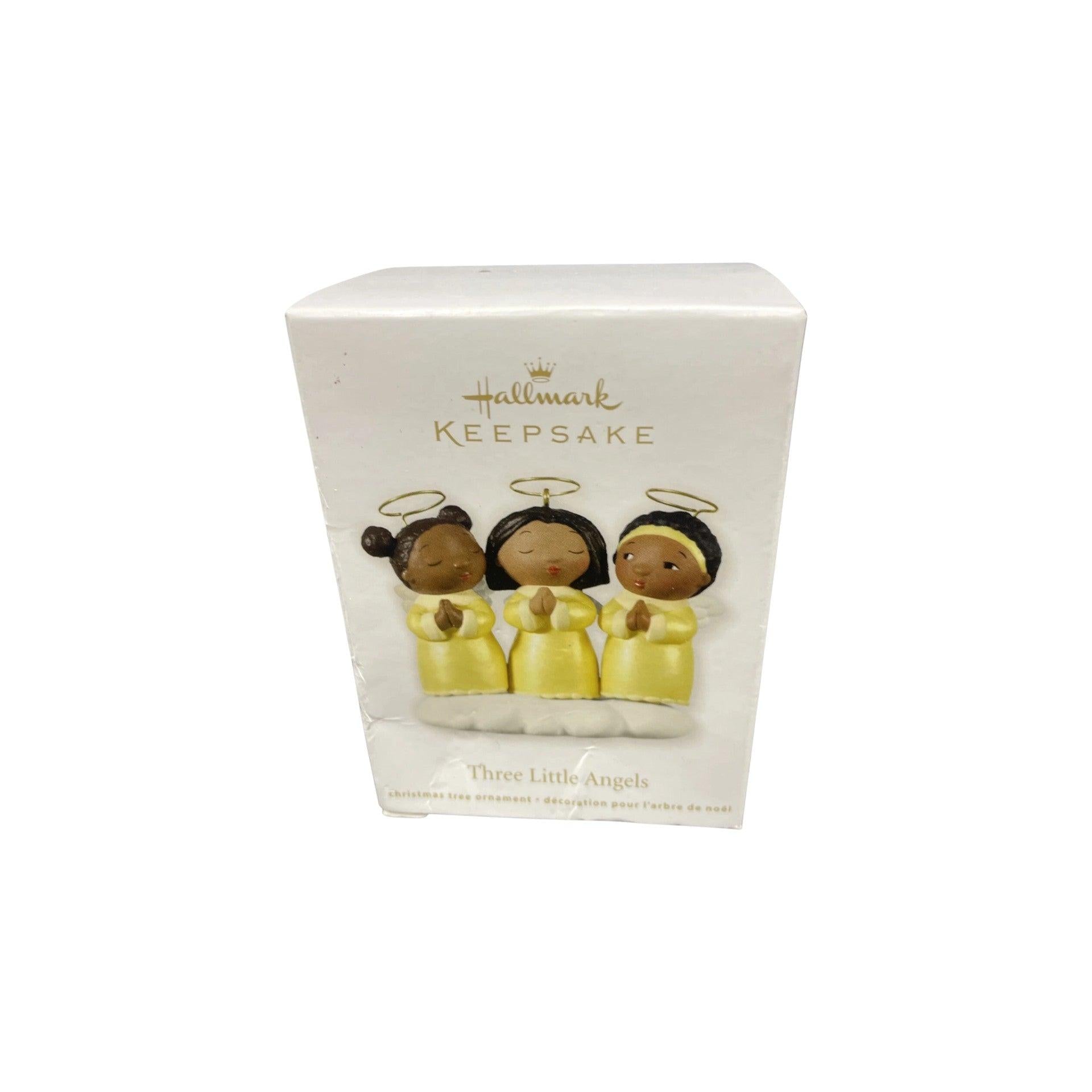 Add a heartfelt touch of faith and innocence to your holiday décor with Three Little Angels from Hallmark. Introduced in 2012, this sweet ornament features three childlike angels gathered together, each delicately sculpted with gentle expressions and soft, peaceful details that symbolize love, protection, and the spirit of Christmas. Its timeless design makes it a meaningful addition to angel collections, religious décor, or traditional Christmas trees. The ornament comes packaged in its original Hallmark Keepsake gift box with packaging materials. This ornament is decorative only and does not require batteries, cords, or light strings.