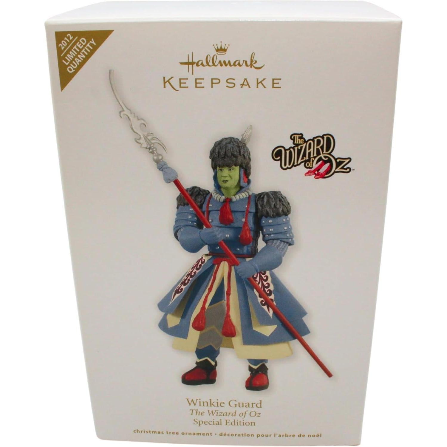 Channel some dramatic flair with the 2012 Winkie Guard ornament from The Wizard of Oz series. Released as a Limited Quantity Keepsake, originally available at the 2012 Hallmark Premiere event and offered exclusively through Gold Crown stores, this 6-inch tall piece is handcrafted with fabric elements that give it texture and theatrical presence. The Winkie Guard is outfitted in full uniform with his ornate armor and a spear, standing guard with stoic resolve.