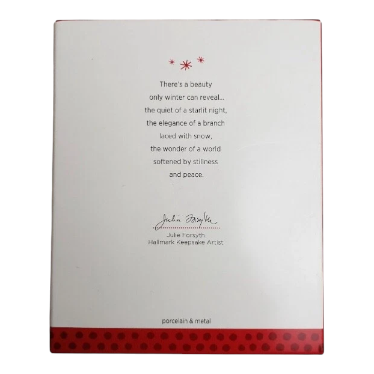 Elevate your tree with the serene beauty of a winter’s night. 2013 A World of Wonder features a majestic white owl perched on a frosted branch, its presence evoking the hush and elegance of a snowy forest. Crafted in porcelain with metal accents, this piece is a Hallmark Gold Crown Exclusive, intended for collectors who appreciate quiet, nature-inspired ornamentation. The package typically includes the ornament and original box (with molded insert when in mint condition).