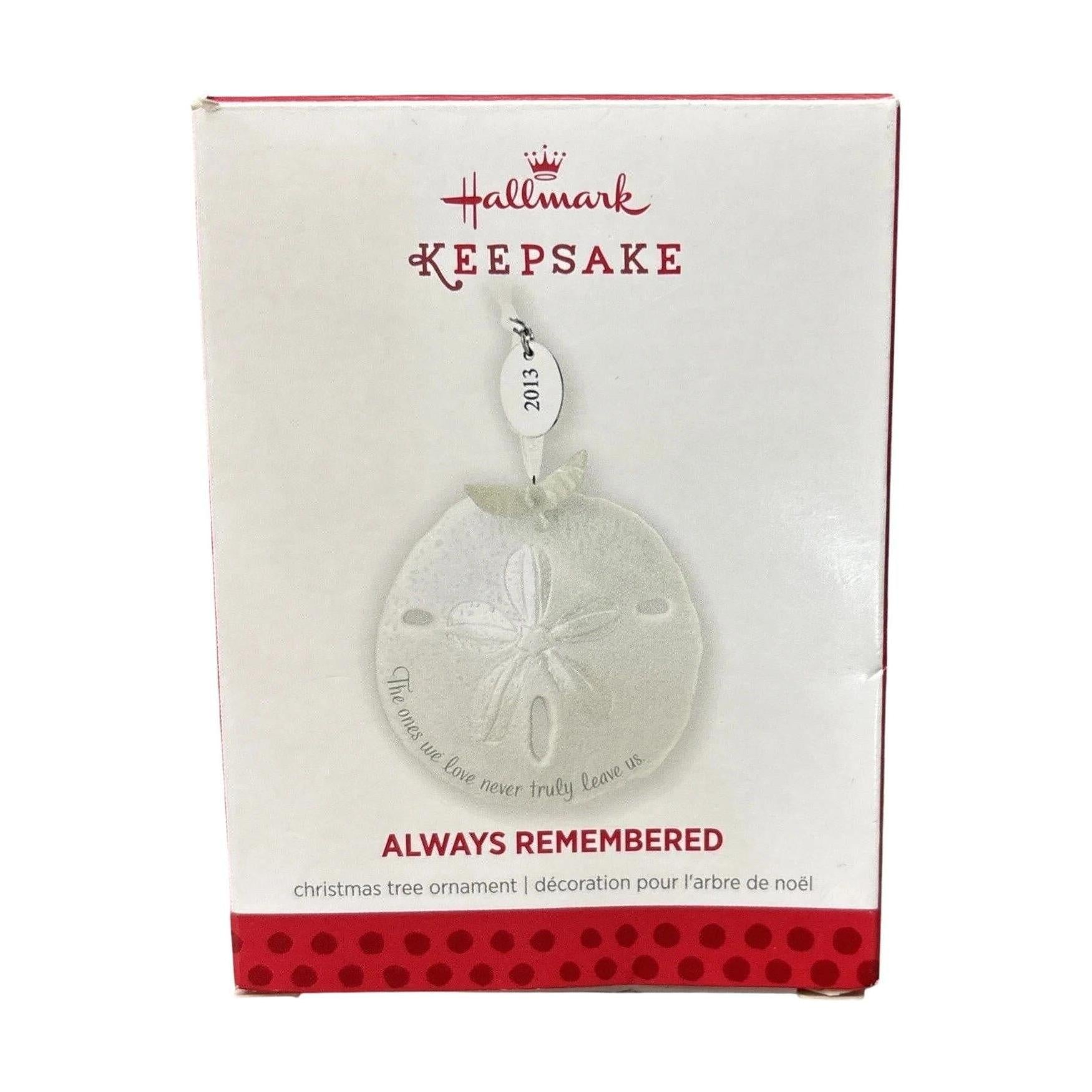 Embrace a meaningful tribute with 2013 Always Remembered (Always Remembered, Sand Dollar Edition). This elegant Hallmark keepsake ornament is shaped like a porcelain sand dollar and features a small dove accent, beautifully inscribed with the sentiment: