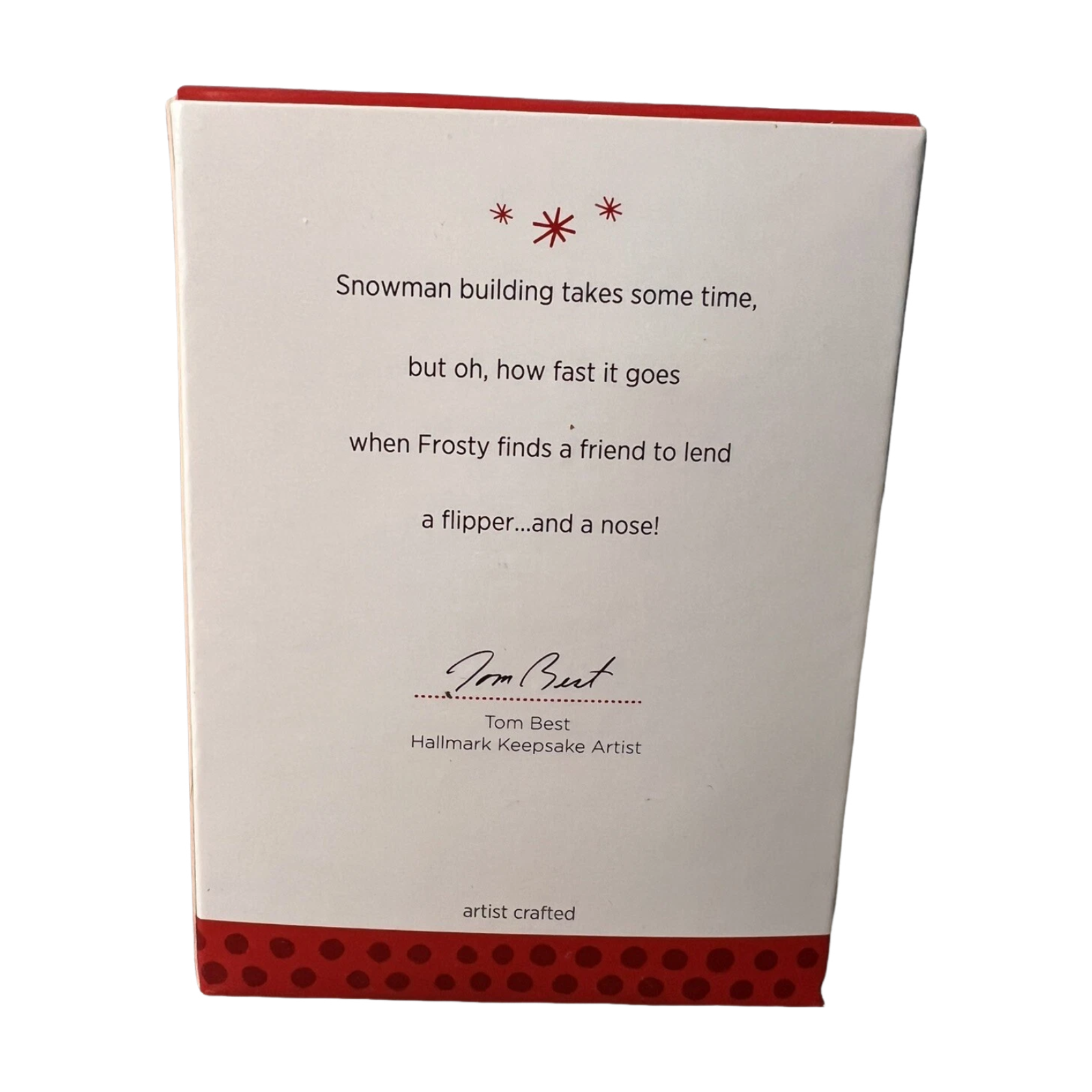 Celebrate joyful teamwork with the 2013 Building a Snowman (Frosty Friends), the 34th and final entry in Hallmark’s cherished Frosty Friends series. This festive ornament captures a cheerful Inuit child stacking snowballs while a playful seal helps balance the snowman’s head—both standing on a frosted acrylic ice base etched with “2013.” Crafted in high-quality resin and acrylic, this ornament arrives mint-in-box, complete with original packaging and hang tag. No batteries, cords, or lights required—just hang it and let the warm charm of friendship shine.