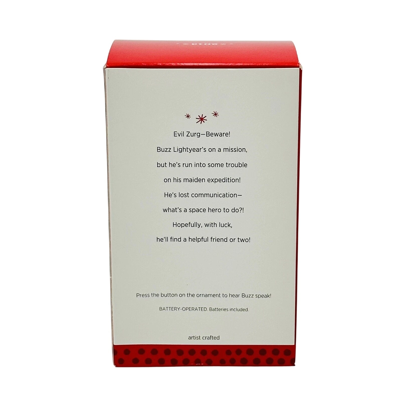 Buzz Lightyear launches into action in this Magic Keepsake ornament, featuring his iconic “on a mission” stance. Press the button to hear Buzz speak — delivering signature quotes that bring the character to life. The design shows him holding up his arm as if communicating in his galactic role, capturing both drama and detail.