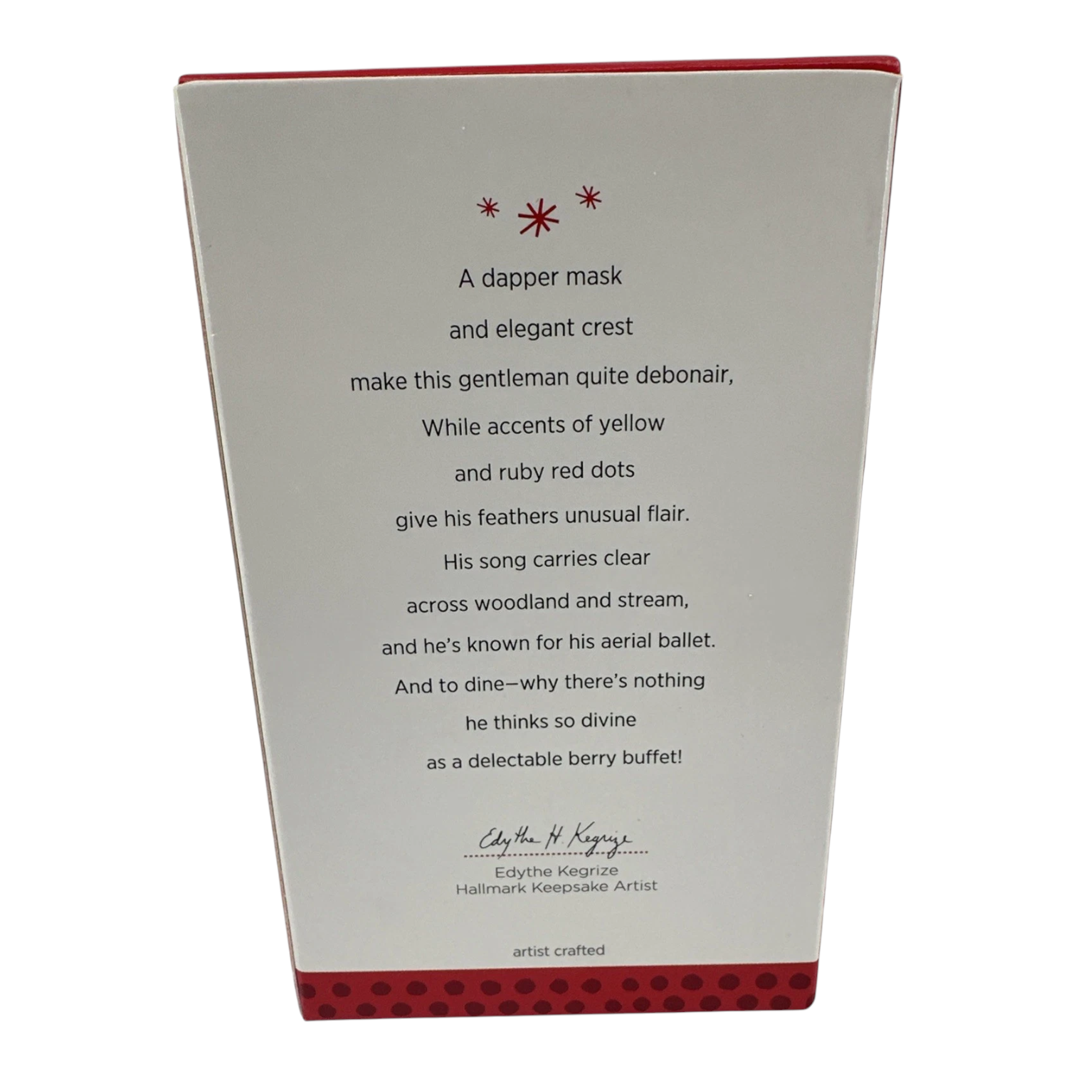 Bring the serene elegance of nature into your holiday décor with the 2013 Cedar Waxwing – Beauty of Birds Keepsake Ornament. The ninth installment in Hallmark’s beloved Beauty of Birds series, this ornament depicts a graceful cedar waxwing perched on a sprig of mistletoe. Intricately detailed with its subtle crest, masked eyes, and six faux diamonds accentuating its wings, this piece was designed by Edythe Kegrize and is a Hallmark Gold Crown Exclusive, making it a rare addition to any nature-inspired collection.