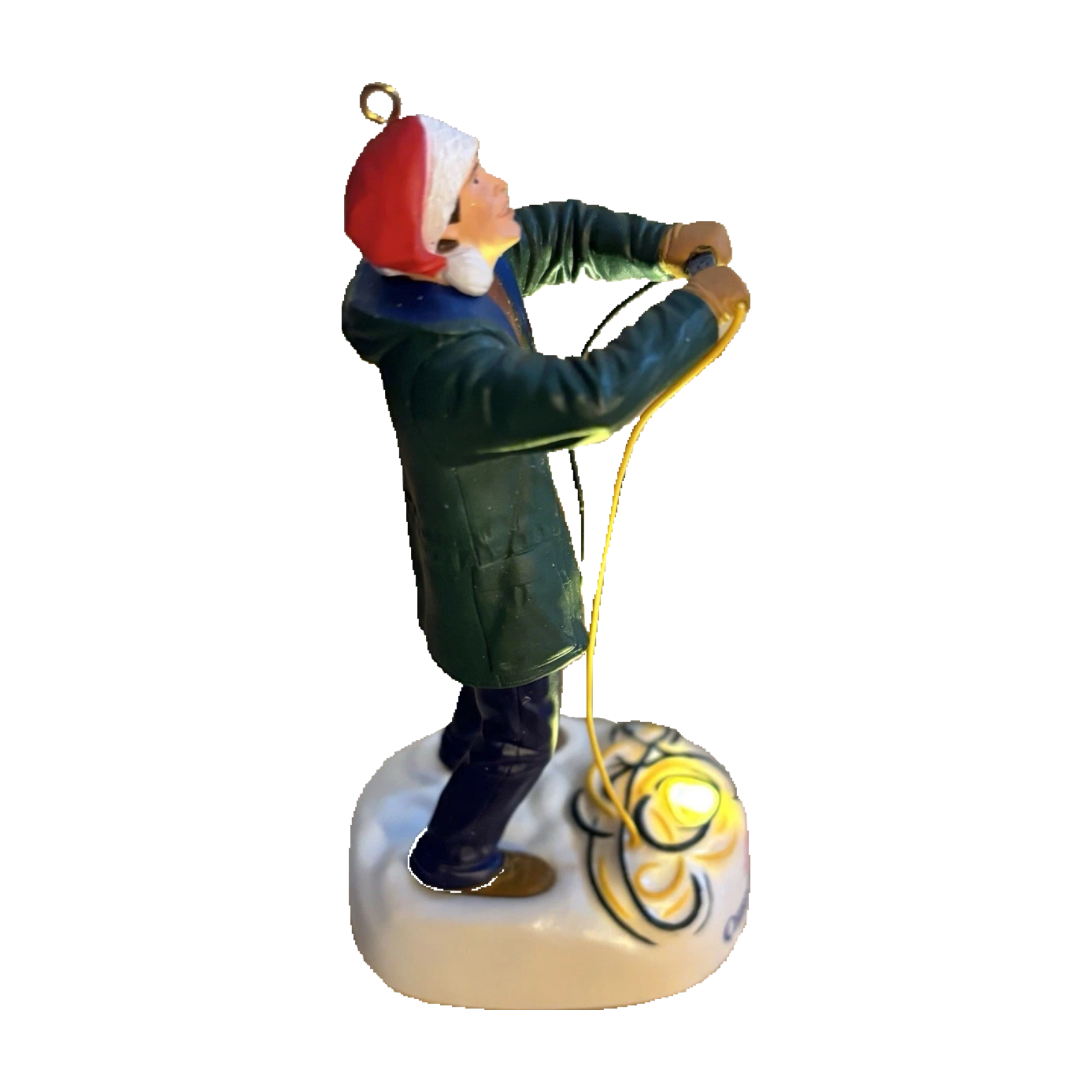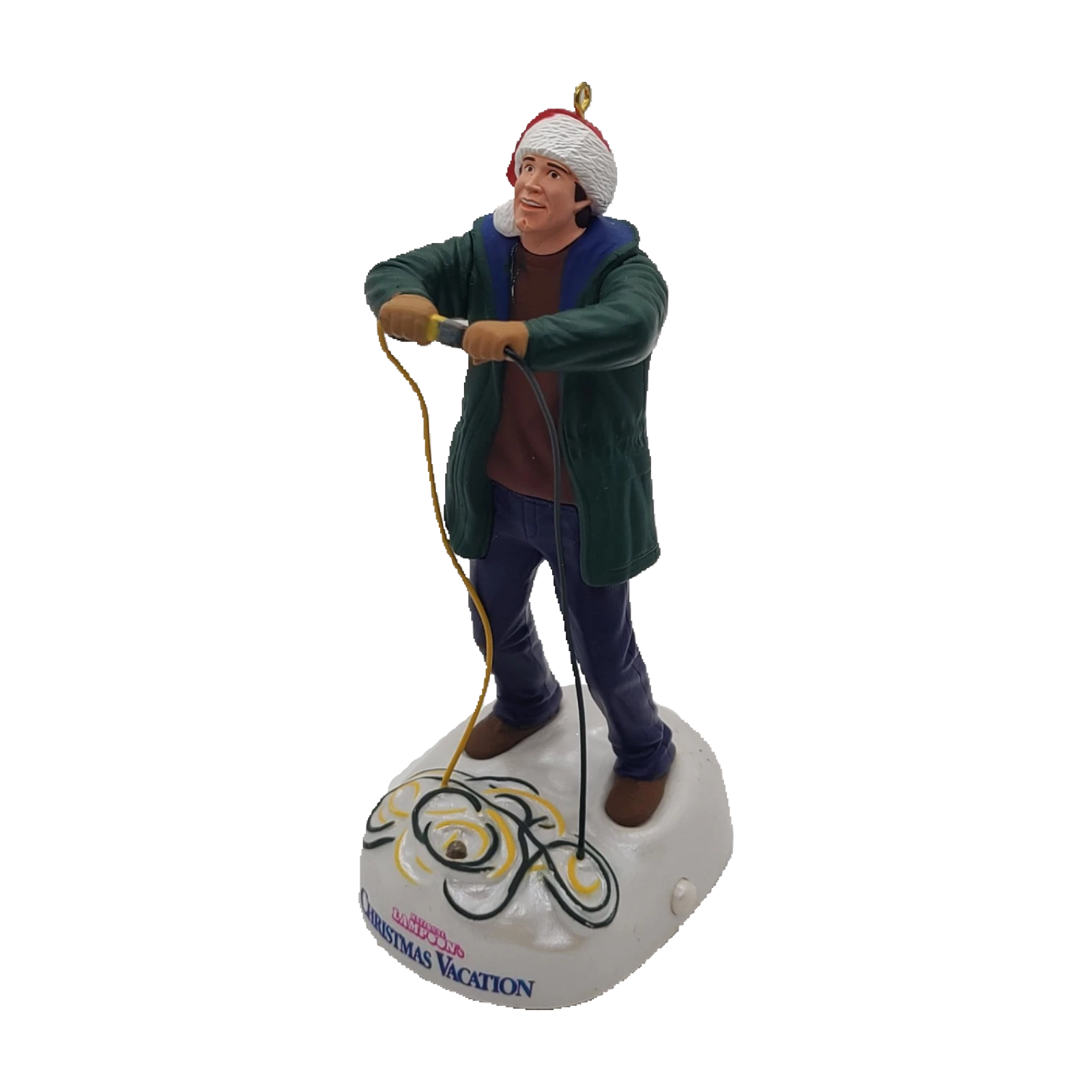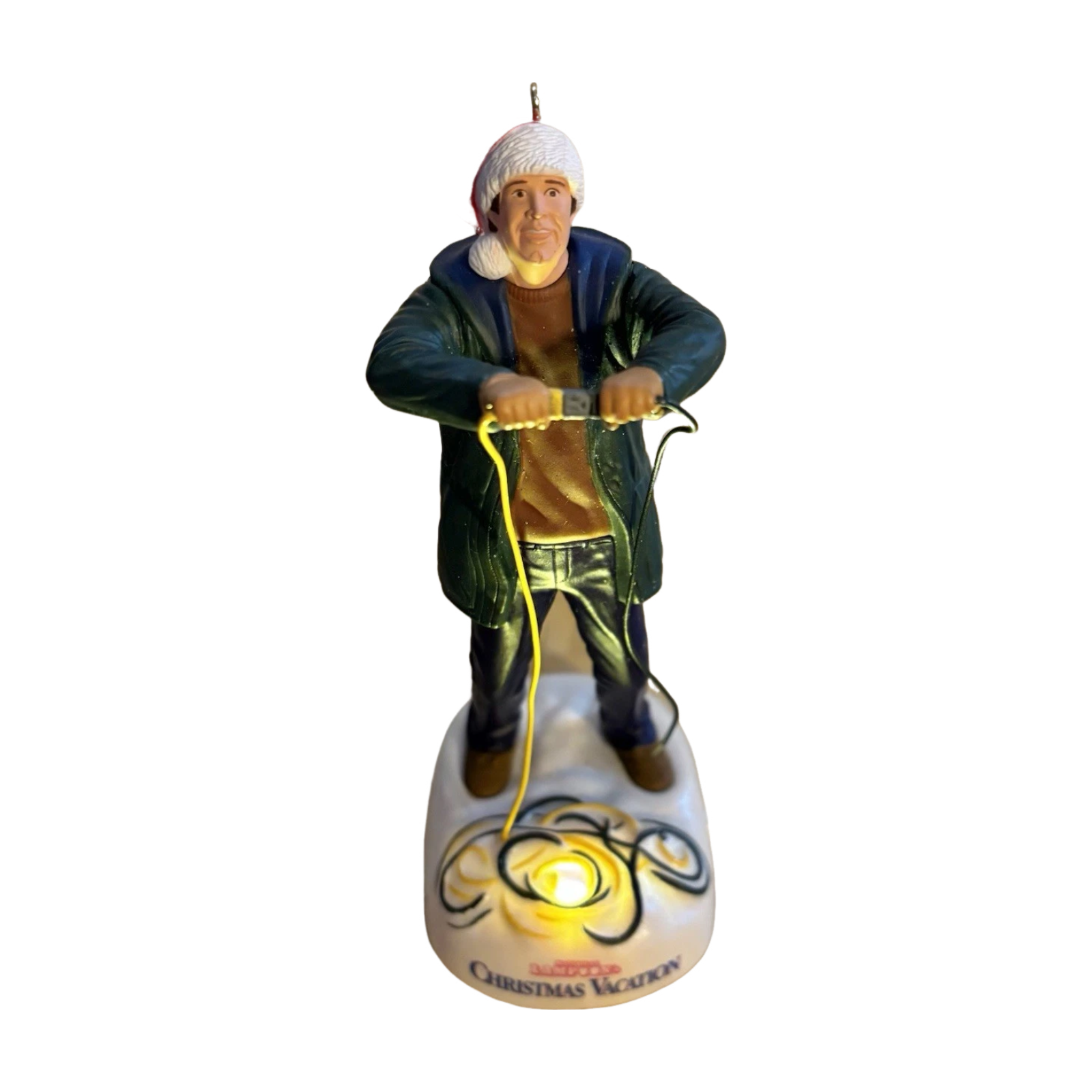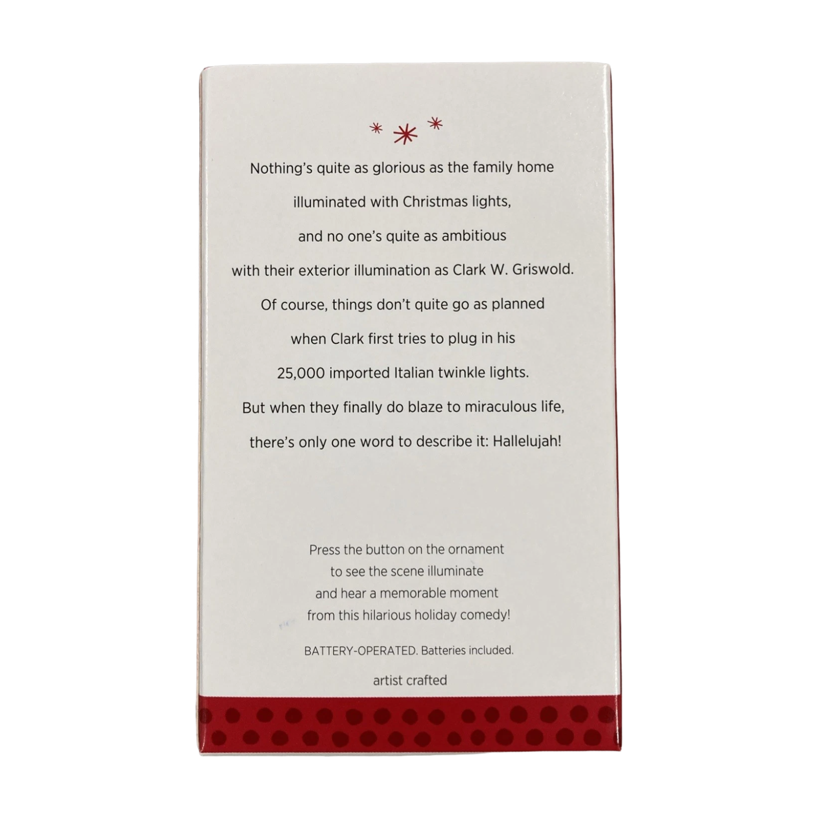 This animated ornament captures the iconic moment from the Griswold family holiday special, when Clark Griswold proudly lights up his house with an extravagant display of 25,000 Italian twinkle lights. A push-button triggers both lights and sound, recreating the movie clip as the house glows and a familiar line plays. The detailed sculpt shows the Clark figure and the house illuminated in festive multi-colours, bringing nostalgia, humour and collector appeal together in one piece. As a 2013 release from the Keepsake “Magic” line and a licensed film-tie-in, it’s particularly prized by fans of Christmas movies and interactive ornaments.