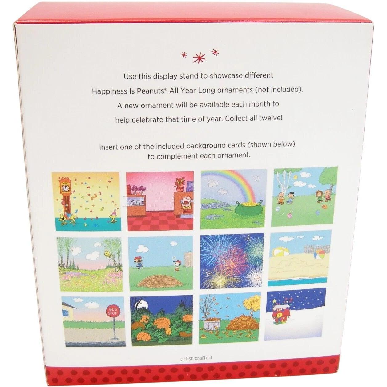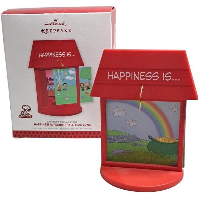 This collectible piece features a display-stand shaped like the iconic dog-house of Snoopy from the Peanuts gang, designed to complement the “Happiness Is Peanuts All Year Long” series of 12 monthly ornaments. Rendered in multicolour molded resin/plastic, it includes six reversible background sheets that swap out to match each month’s theme. This Gold Crown exclusive for 2013 appeals to collectors of animated-character Christmas décor and those building the complete monthly “Peanuts” set for year-round display. With its thoughtful accessory role, it enhances both holiday tree presentations and shelf displays dedicated to the Peanuts universe.