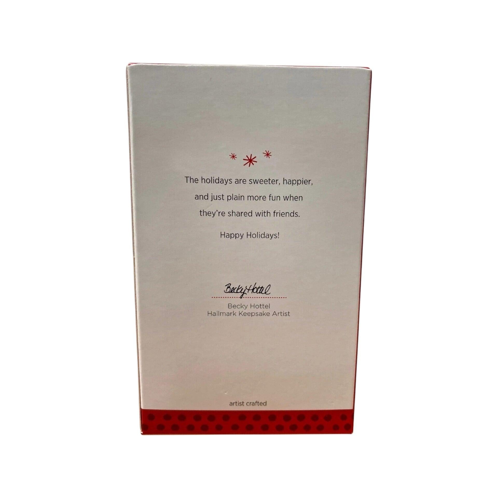 This 2013 edition of the Hallmark Keepsake Ornament (item # QXG1605) features a charming snowman dressed in a flannel scarf and mittens, holding a nut-wreathed branch, with his squirrel friend perched on his arm. The design by artist Becky Hottel captures both winter whimsy and the warmth of holiday friendship. It’s ideal for tree display, gifting to a friend, or adding a “friendship” themed piece to a Keepsake collection.